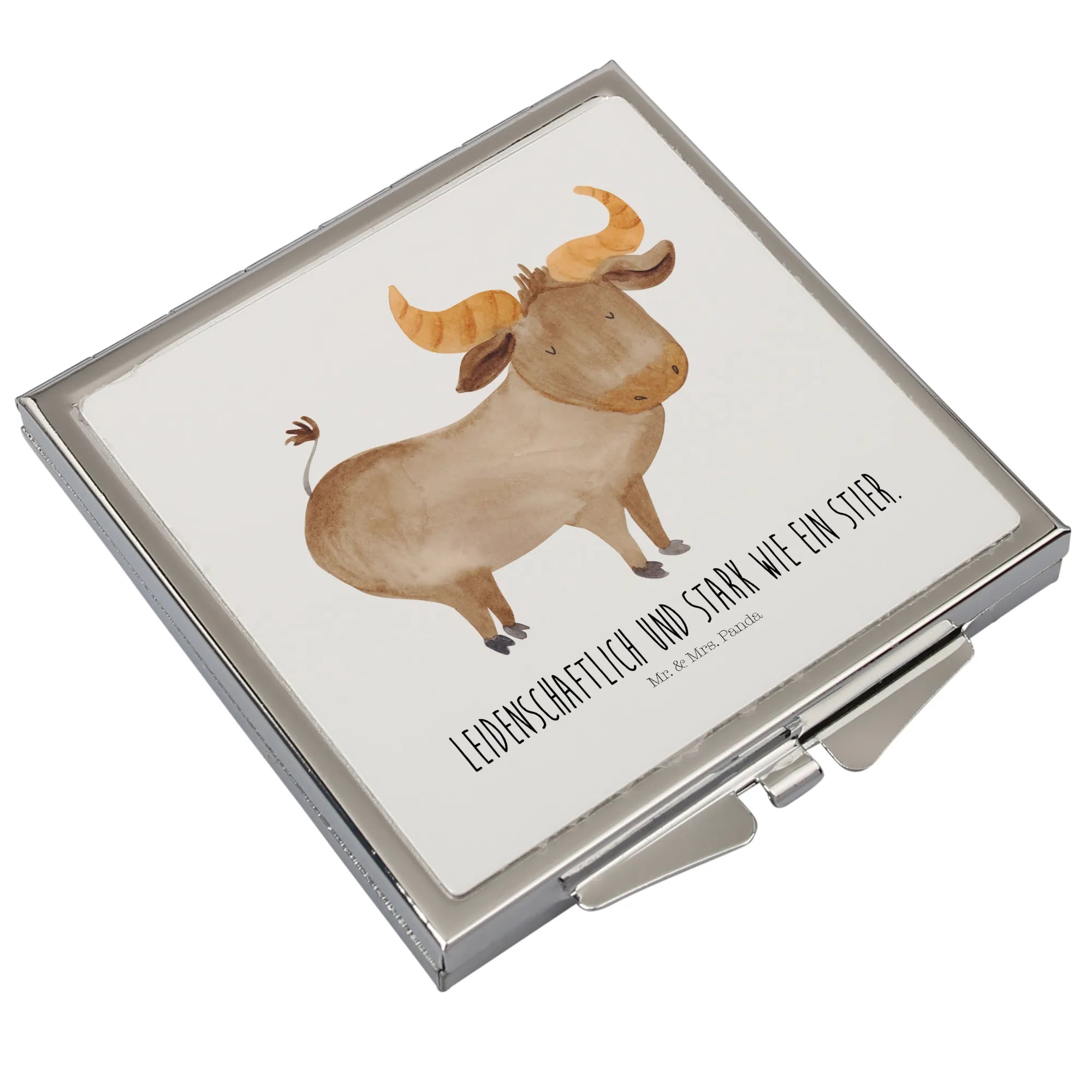 Kwadratowe lusterko do torebki Znak zodiaku Byk - z napisem - Biały