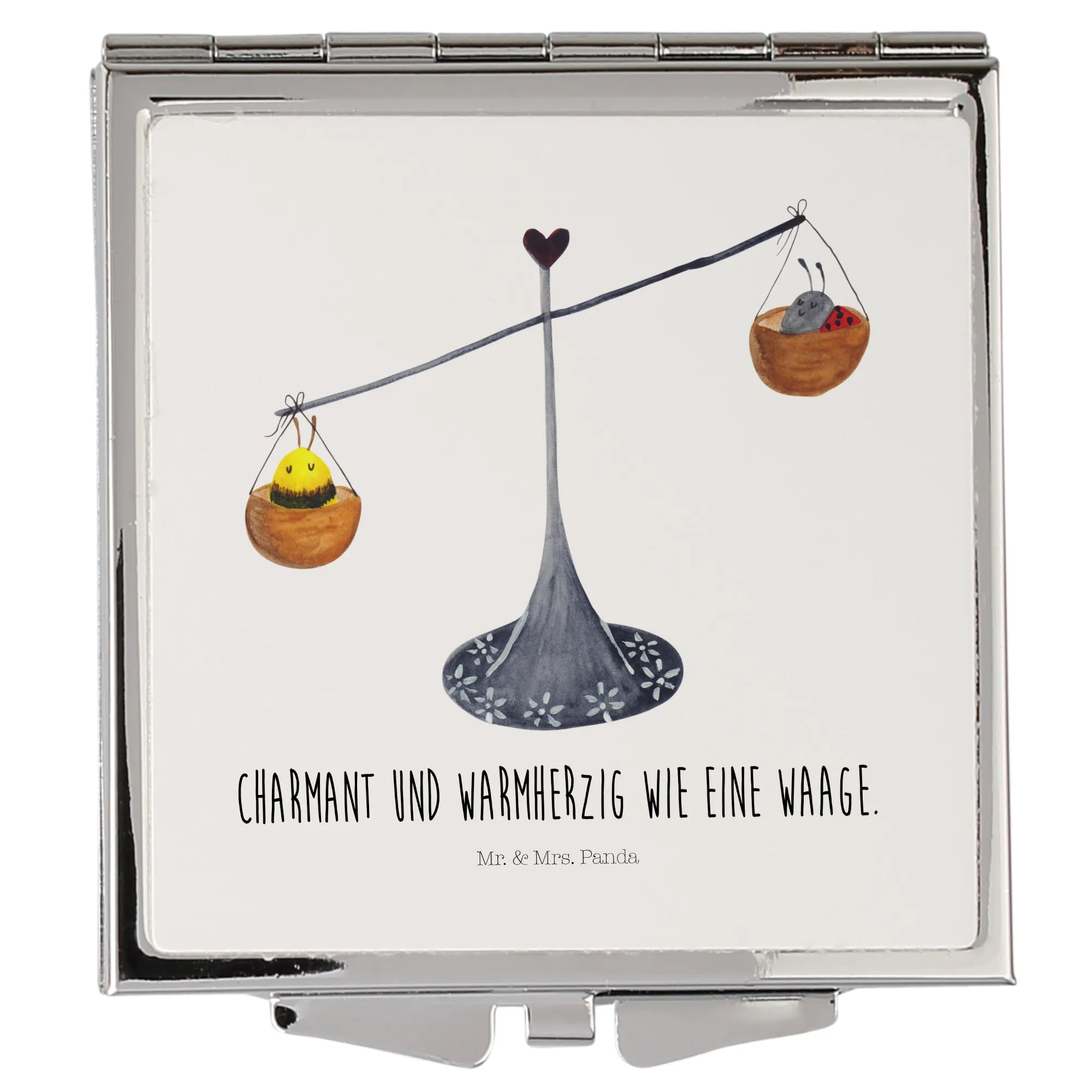 Kwadratowe lusterko do torebki Znak zodiaku waga - z napisem - Biały