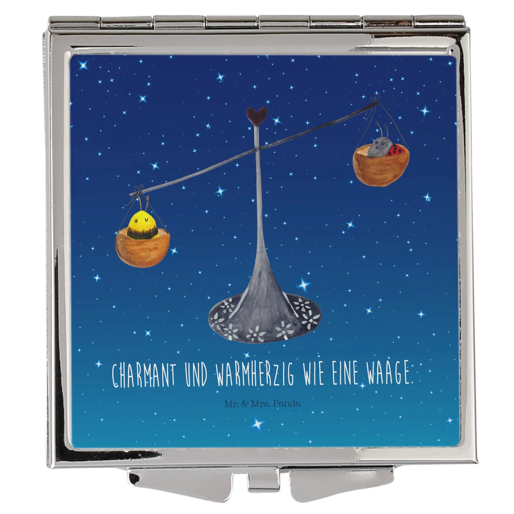 Kleiner Spiegel, große Wirkung: Dieser quadratische Handtaschenspiegel aus der Sternzeichen-Kollektion von Mr. & Mrs. Panda ist ideal für alle, die Balance und Schönheit lieben. Das liebevoll gezeichnete Motiv zeigt die Waage, die ausgeglichen zwischen einem Marienkäfer und einer Hummel balanciert. Ein fröhliches, farbenfrohes Design, das sofort ein Lächeln zaubert.
