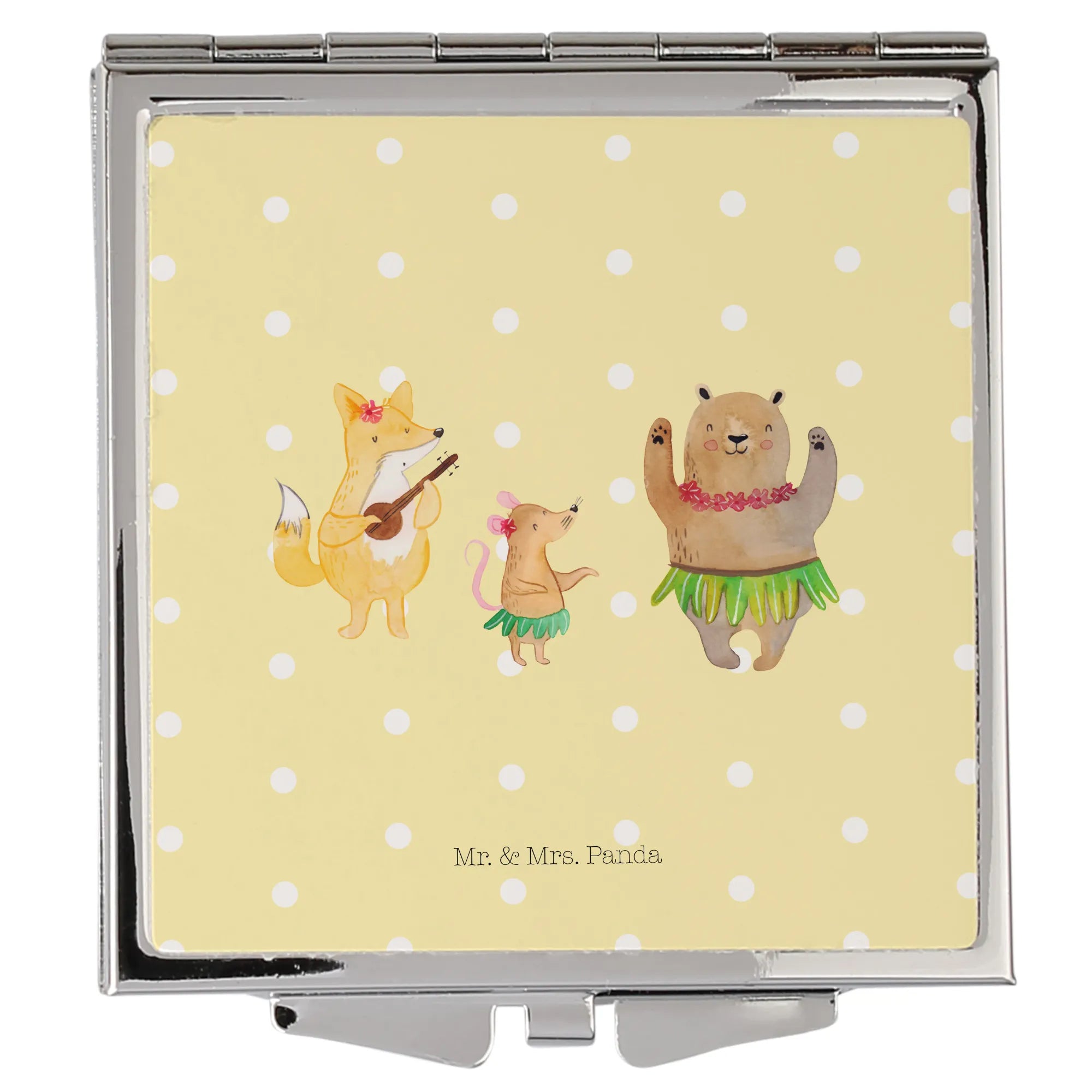 Kwadratowe lusterko do torebki zwierzęta leśne Aloha - z napisem - biały