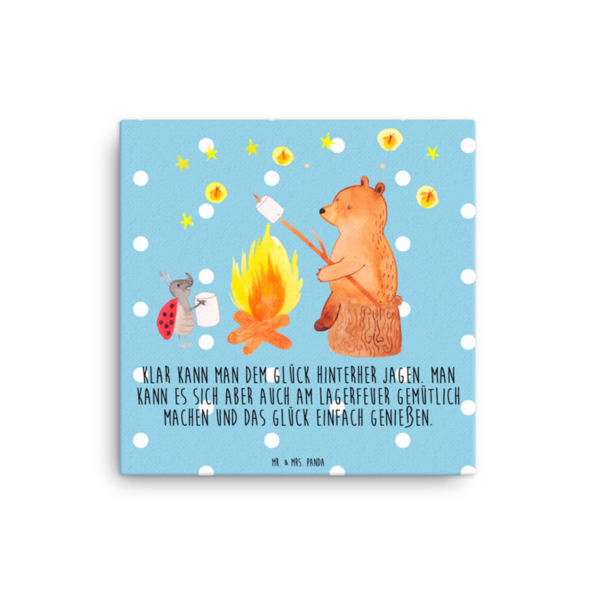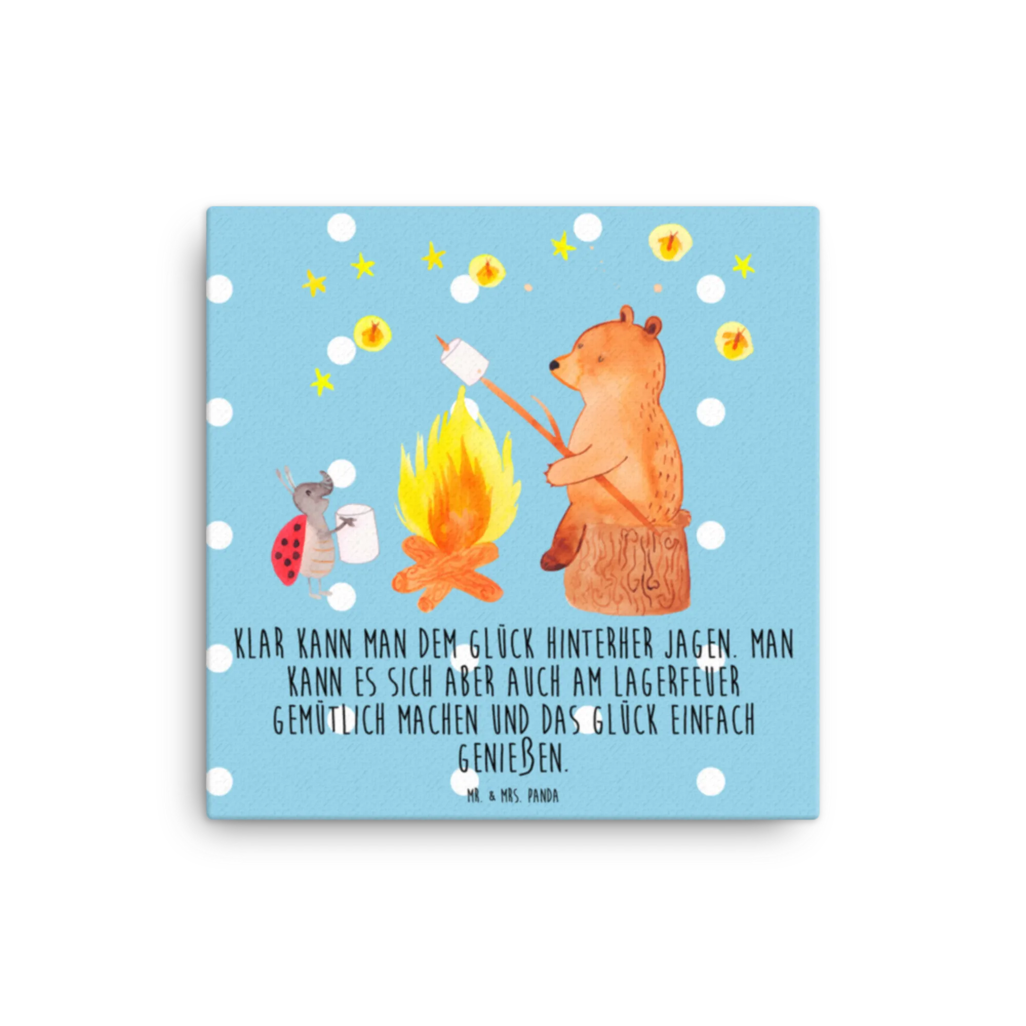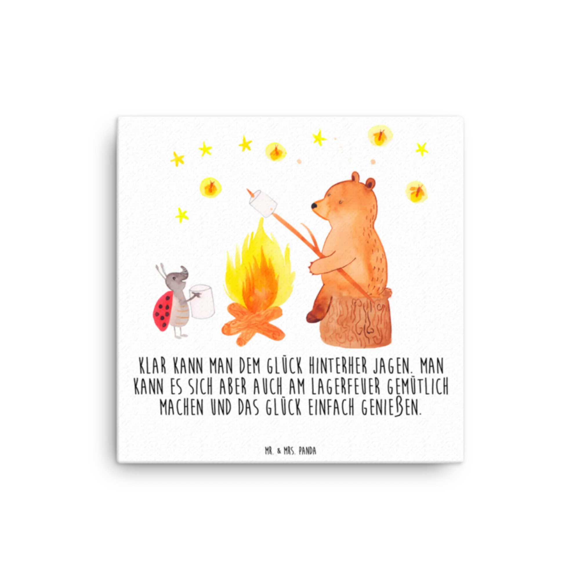 Leinwand Bild Bär & Marienkäfer Lagerfeuer - 40 x 40 cm - mit Spruch - Weiß