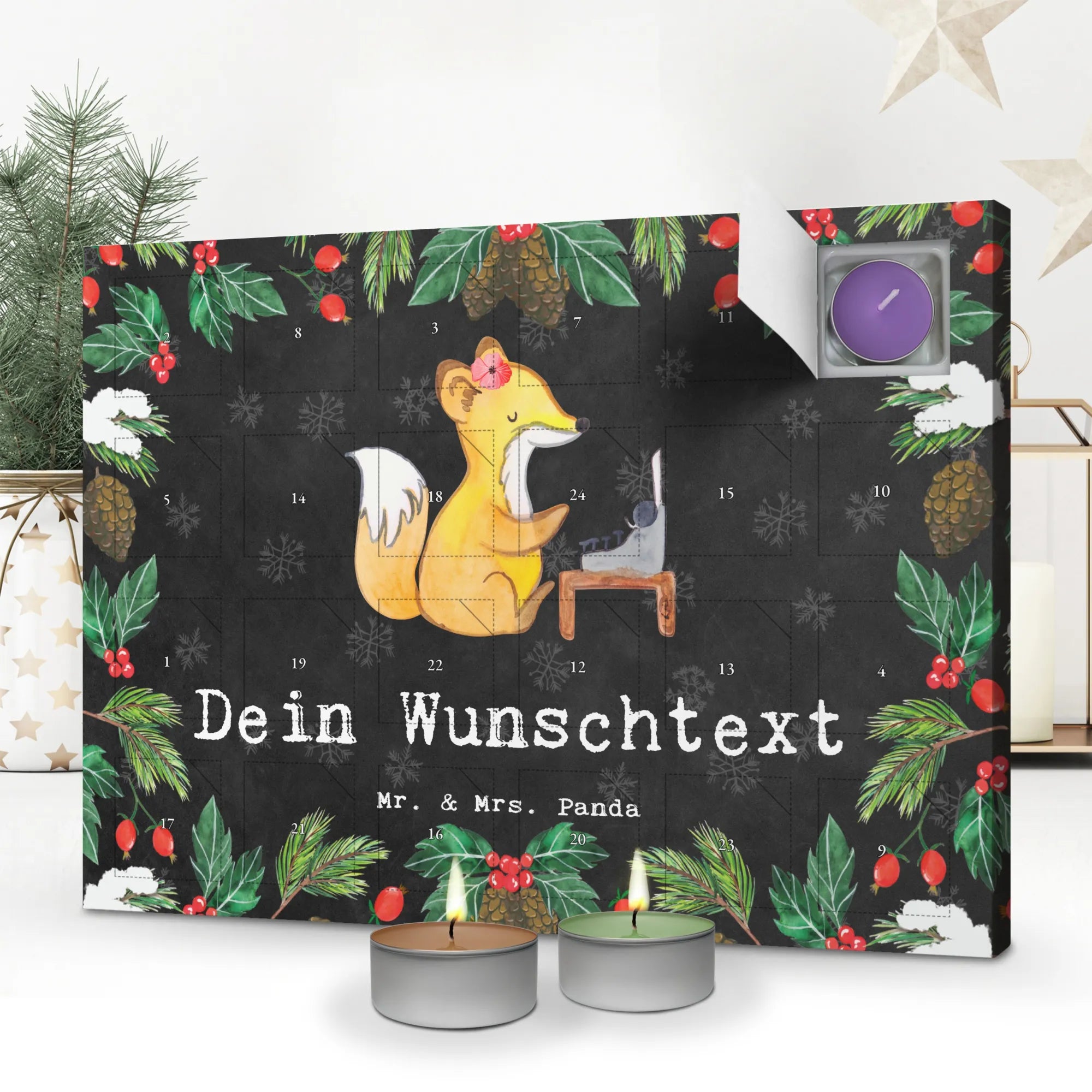 Der personalisierte Duftkerzen Adventskalender "Fuchs Beste Kollegin der Welt" von Mr. & Mrs. Panda ist das perfekte Geschenk für deine Lieblingskollegin! Jeder Tag in der Adventszeit wird zu einem besonderen Erlebnis, denn hinter jedem Türchen verbirgt sich eine liebevolle Überraschung: Eine Duftkerze mit weihnachtlichen Aromen, die die gemütliche Stimmung der Weihnachtszeit verbreitet. Egal, ob für den Abschied deiner Kollegin, ihren Ruhestand oder einfach als Dankeschön für die tolle Zusammenarbeit – dieser Adventskalender ist die ideale Wahl!
