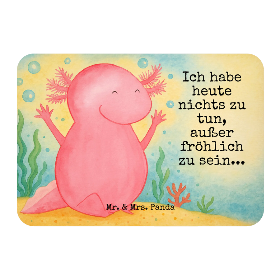 Schau dir dieses kleine Axolotl an, wie es die Arme in die Höhe reckt und vor Freude jubelt! Unser Dekomagnet aus der Axolotl-Kollektion von Mr. & Mrs. Panda bringt Farbe und gute Laune in Küche, Büro oder Kinderzimmer. Der Spruch „Ich habe heute nichts zu tun, außer fröhlich zu sein...“ ist vollflächig aufgedruckt und verbreitet eine warme, verspielte Stimmung.