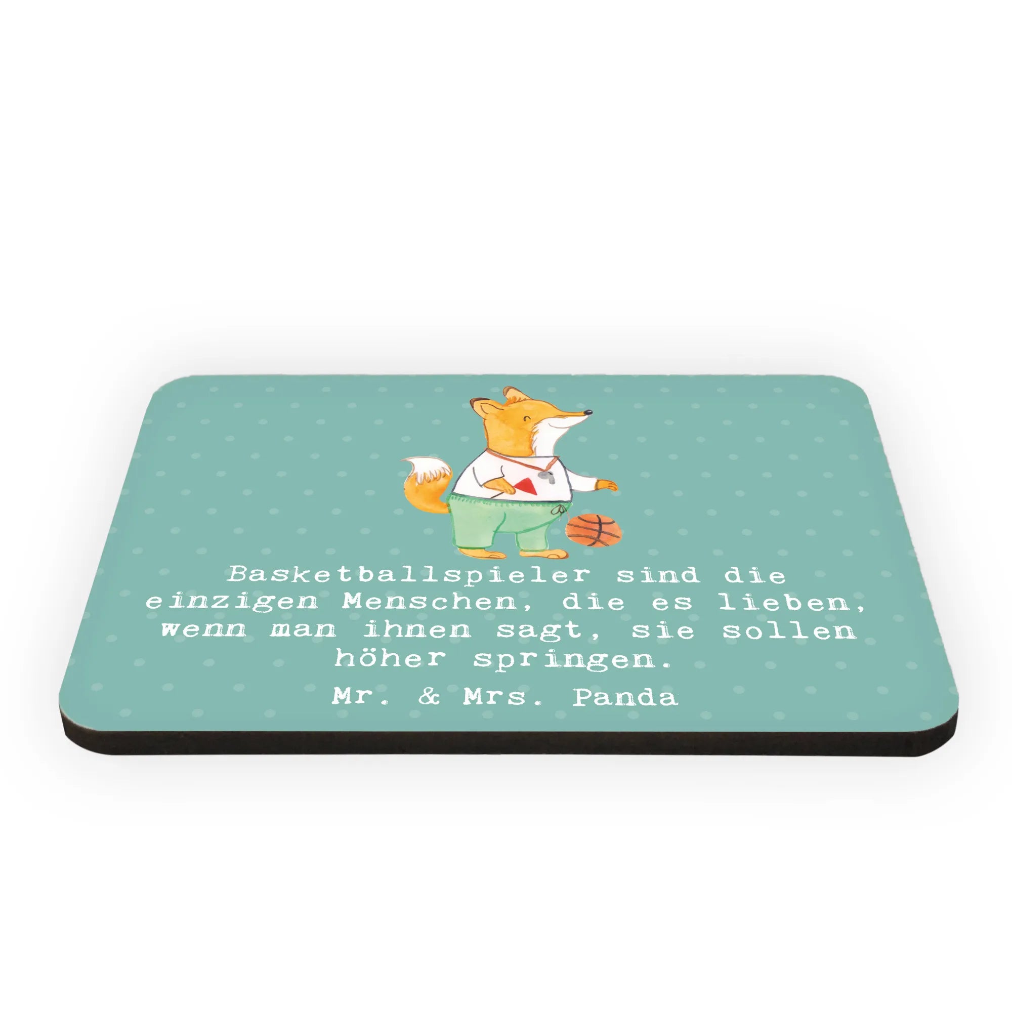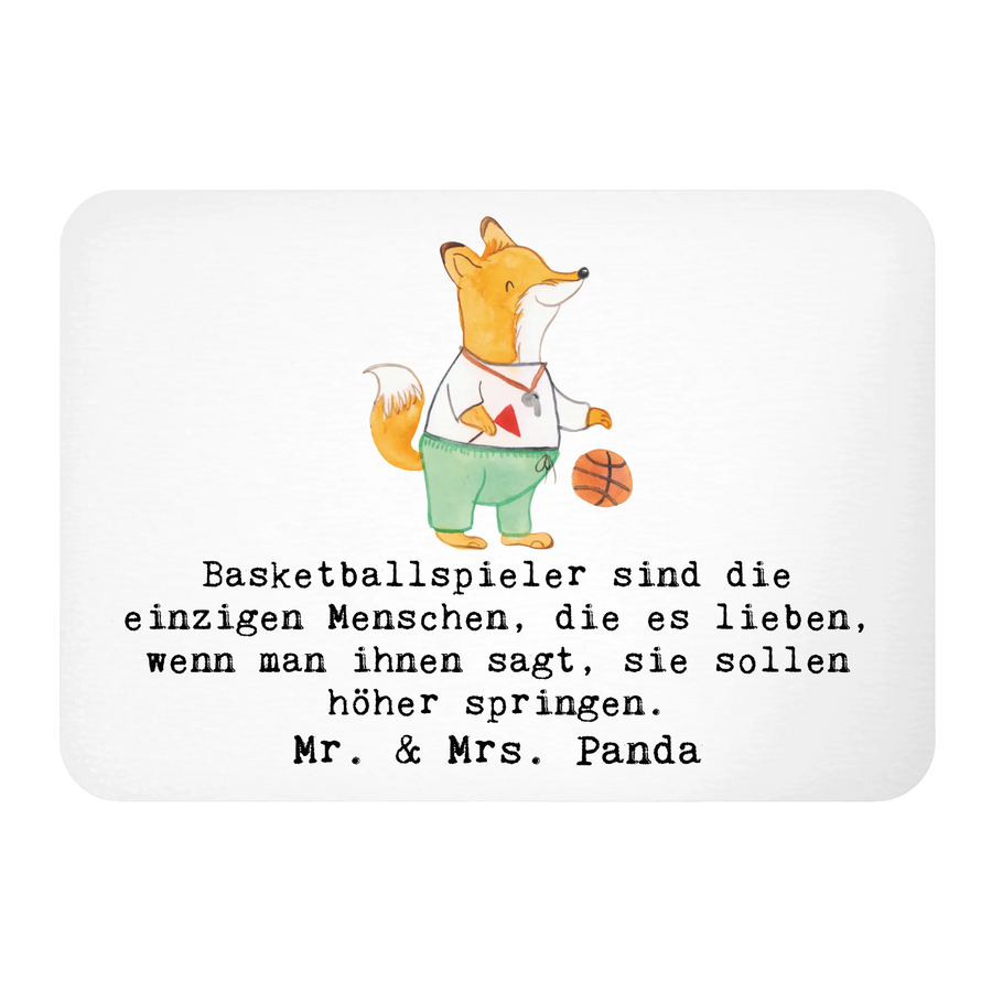 Der Mr. & Mrs. Panda Kühlschrankmagnet Basketball ist das perfekte Geschenk für Sportbegeisterte jeden Alters! Mit seinem charmanten Design und dem witzigen Spruch "Basketballspieler sind die einzigen Menschen, die es lieben, wenn man ihnen sagt, sie sollen höher springen" bringt dieser Magnet nicht nur Farbe in deine Küche, sondern auch ein Lächeln auf dein Gesicht.