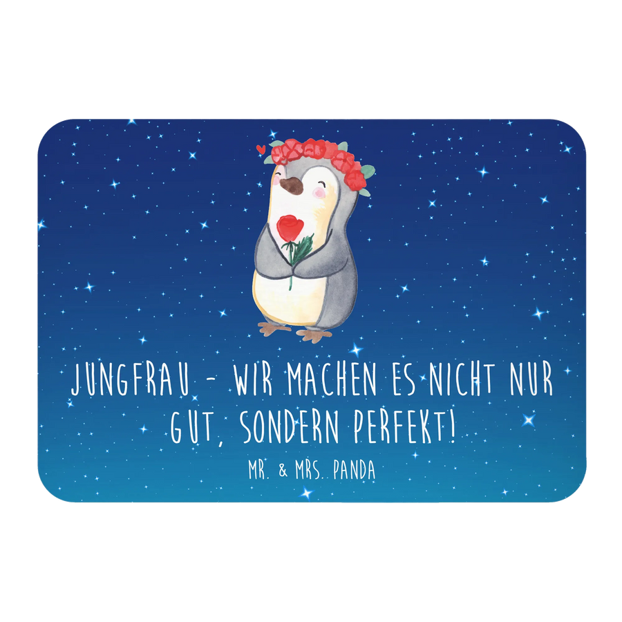 Suchst du ein kleines, liebevolles Geschenk für eine Jungfrau? Unser Magnet aus der Sternzeichen-Kollektion vereint Charme und Alltagstauglichkeit. Das handgezeichnete Aquarell-Motiv von Mrs. Panda zusammen mit dem frechen Spruch „Jungfrau - Wir machen es nicht nur gut, sondern perfekt!“ macht diesen Magneten zum perfekten Hingucker für Kühlschrank, Pinnwand oder Whiteboard.