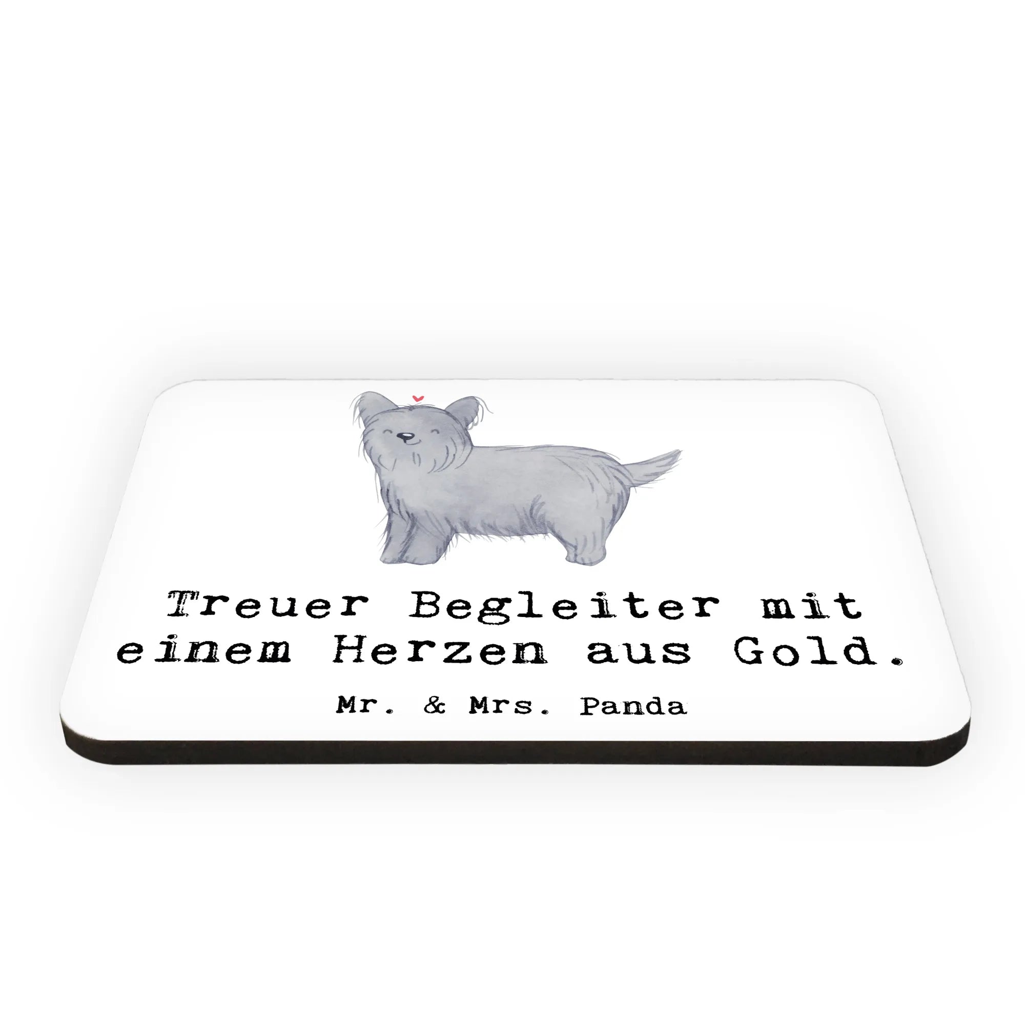 Mit dem süßen Slogan „Treuer Begleiter mit einem Herzen aus Gold“ erinnert dich dieser Magnet jeden Tag an die treuen Eigenschaften deines Lieblings-Haustiers oder an deinen geliebten Skye Terrier. Die Hunderassen Kollektion von Mr. & Mrs. Panda vermittelt die wunderbare Liebe zu Hunden in Form von farbenfrohen und lebhaften Motiven, die handgezeichnet wurden. Diese Kollektion stellt verschiedene Hunderassen dar und bietet für jeden Hundefan den passenden Magneten.