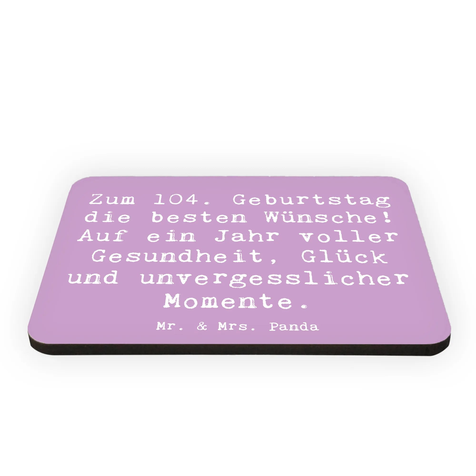 Der Kühlschrankmagnet "104. Geburtstag" von Mr. & Mrs. Panda ist das perfekte Geschenk für alle, die einen ganz besonderen Geburtstag feiern. Mit seinem bunten, liebevollen Design und dem herzlichen Slogan "Zum 104. Geburtstag die besten Wünsche! Auf ein Jahr voller Gesundheit, Glück und unvergesslicher Momente" bringt dieser Magnet ein Lächeln auf jedes Gesicht.