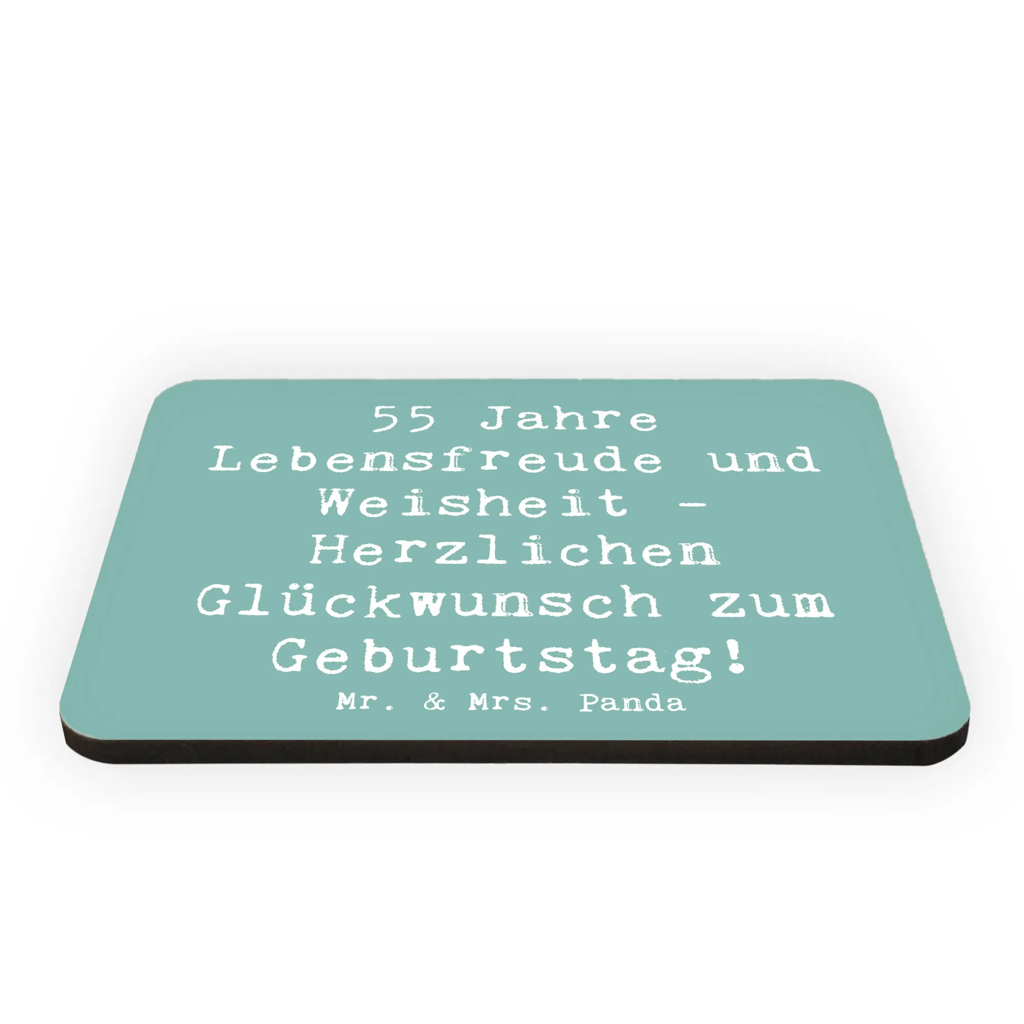 Die Leidenschaft für das Besondere und die Freude am Schenken wird bei Mr. & Mrs. Panda großgeschrieben. Deswegen ist dieser Magnet auch ein wunderbares Souvenir, das ein Stück Erinnerung an diesen speziellen Tag bewahrt. Verschenke mit unserem Magneten nicht nur ein Geschenk, sondern auch Freude, Liebe und echte Lebensfreude. Hol Dir dieses liebevolle Stück für Deinen Einkauf oder verschenke es an jemand, der 55 Jahre voller Leben hinter sich hat. Es wird die perfekte Deko für jeden Kühlschrank sein!