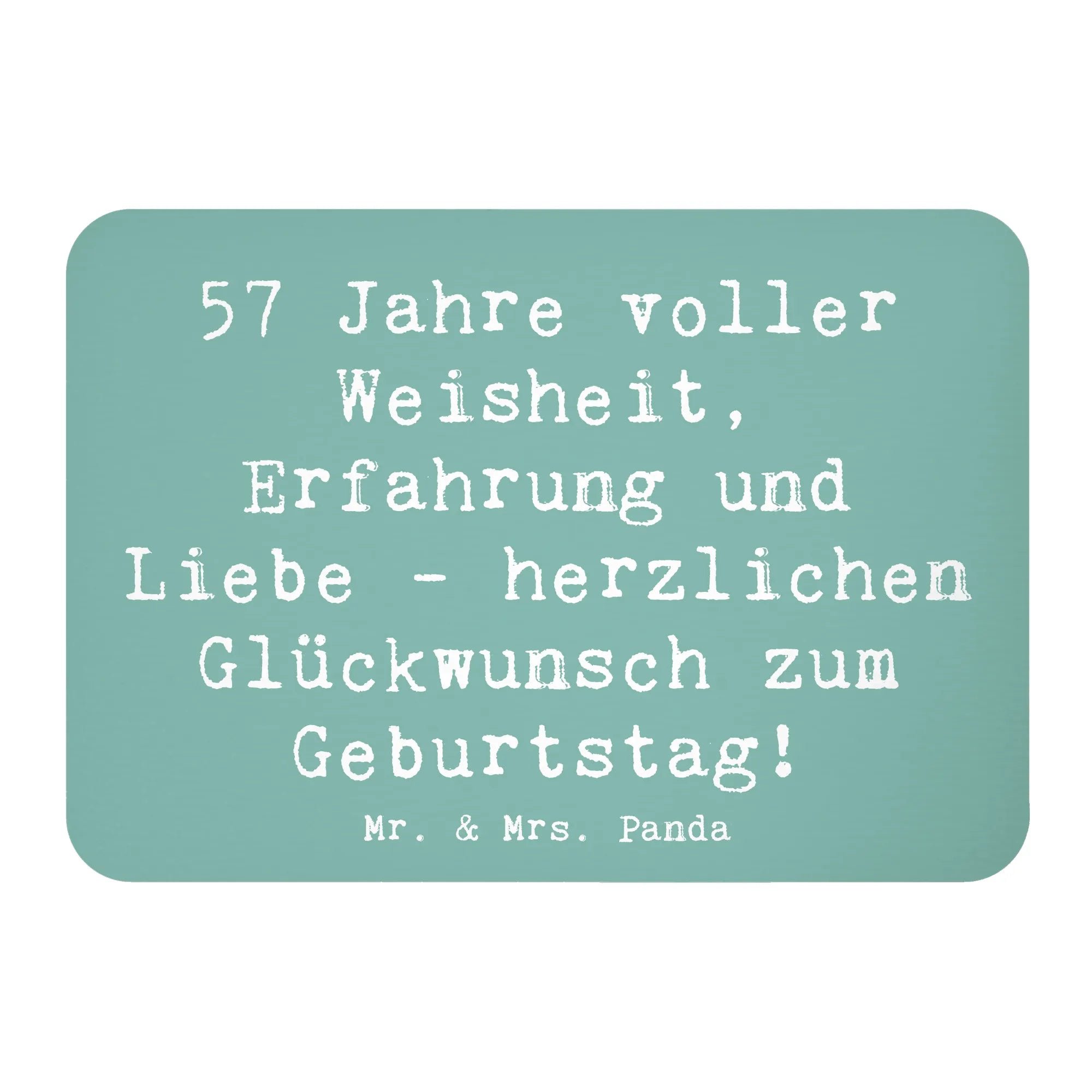 Der Kühlschrankmagnet "57 Jahre voller Weisheit, Erfahrung und Liebe - herzlichen Glückwunsch zum Geburtstag!" von Mr. & Mrs. Panda ist das perfekte Geschenk für alle, die den 57. Geburtstag eines geliebten Menschen feiern möchten. Mit seinem liebevollen Design und dem herzlichen Spruch bringt dieser Magnet nicht nur Farbe in die Küche, sondern auch ein Lächeln auf die Gesichter der Beschenkten.