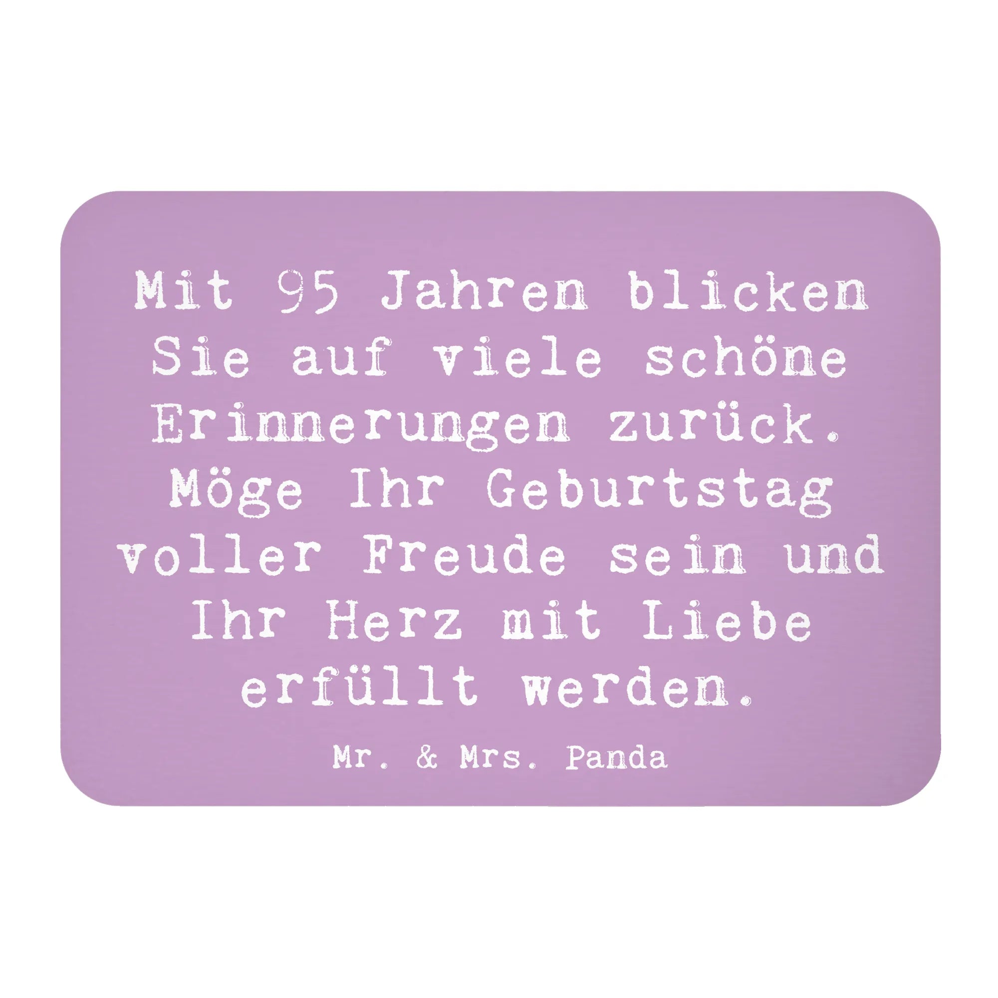 Der Magnet zum 95. Geburtstag von Mr. & Mrs. Panda ist nicht nur ein praktisches Accessoire, sondern auch eine liebevolle Geste, um einen ganz besonderen Anlass gebührend zu feiern. Mit dem Motiv, das die sagehafte Zahl 95 zeigt und dem herzlichen Spruch 'Mit 95 Jahren blicken Sie auf viele schöne Erinnerungen zurück. Möge Ihr Geburtstag voller Freude sein und Ihr Herz mit Liebe erfüllt werden.', wird dieser Magnet zum idealen Geschenk für Verwandte und Freunde, die dieses beeindruckende Lebensalter erreichen.