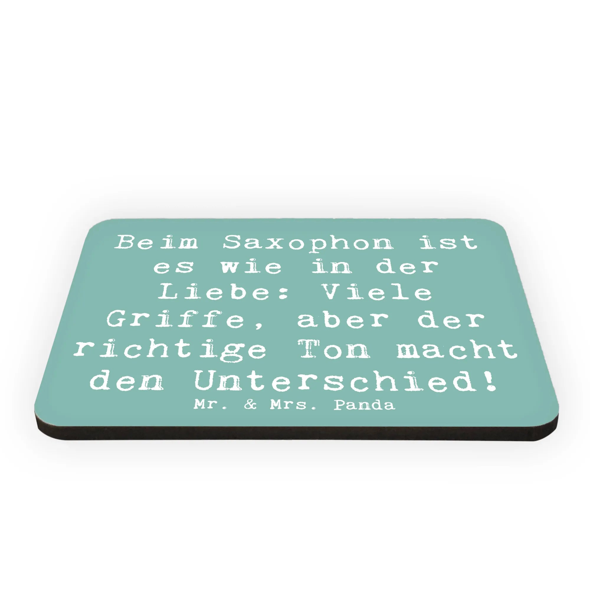 Mit dem Spruch "Beim Saxophon ist es wie in der Liebe: Viele Griffe, aber der richtige Ton macht den Unterschied!" spricht dieser Magnet direkt das Herz von saxophonspielenden Freunden und Familienmitgliedern an. 💖