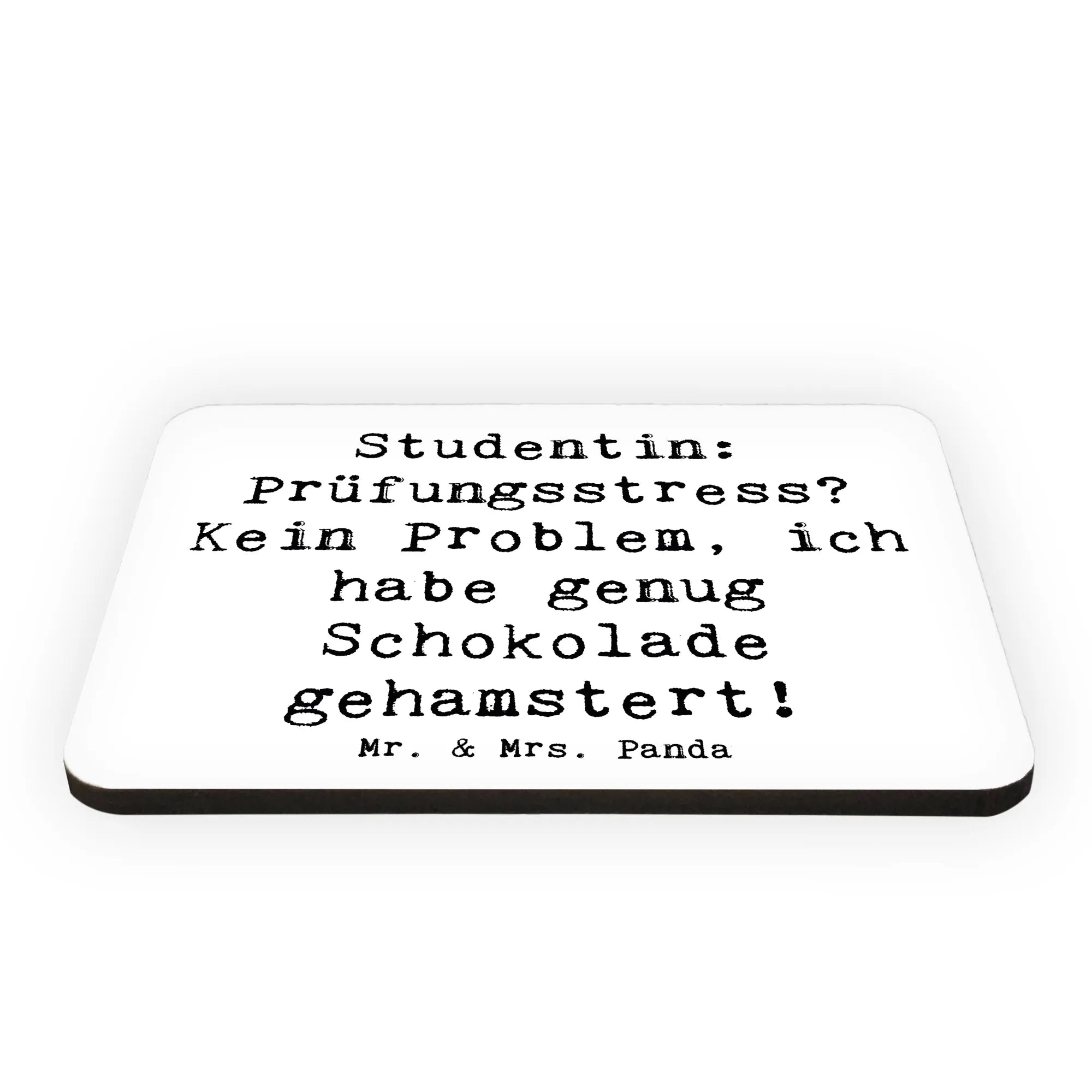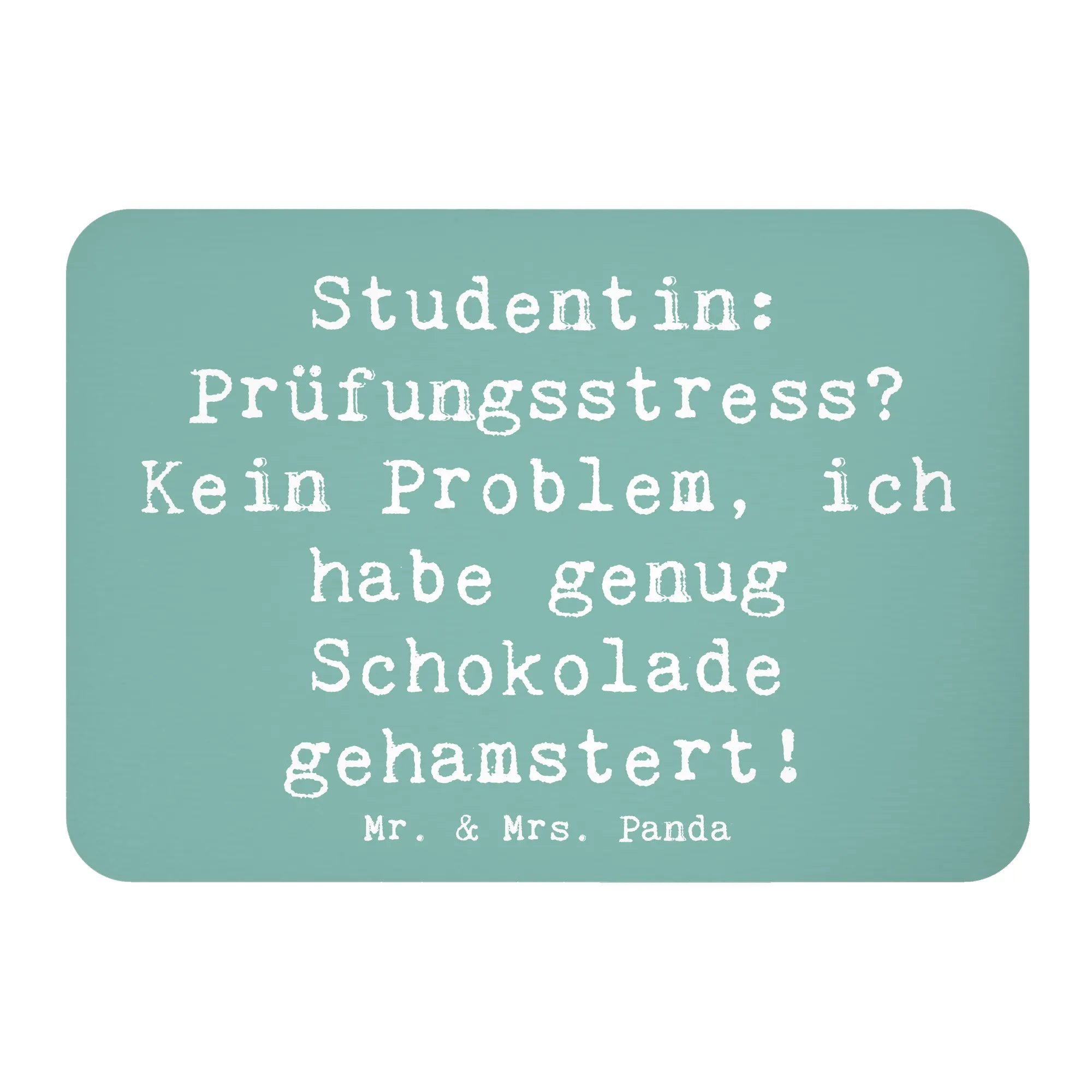 Du bist auf der Suche nach dem perfekten Geschenk für eine Studentin? Dann ist der Kühlschrankmagnet "Studentin: Prüfungsstress? Kein Problem, ich habe genug Schokolade gehamstert!" von Mr. & Mrs. Panda genau das Richtige!