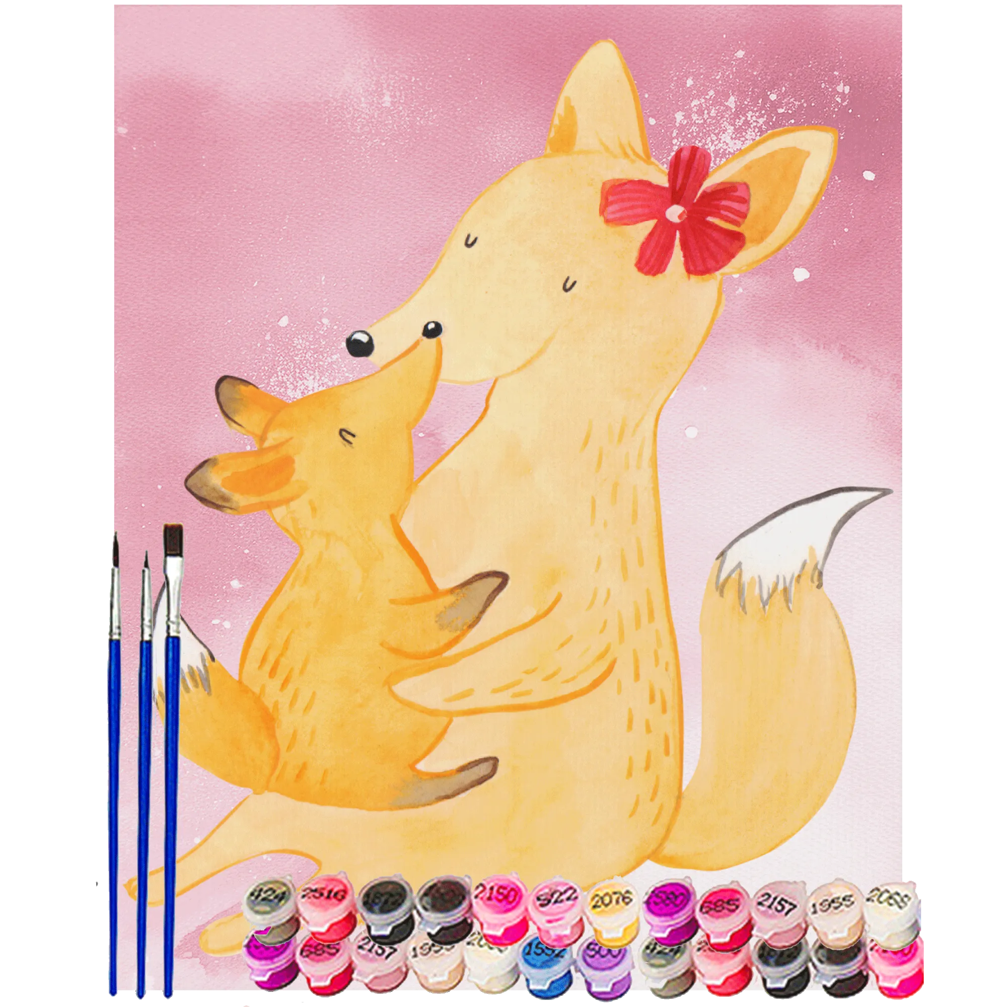 Malowanie według numerów Lis Mama - Ohne Rahmen - 24 Farben (Standard) - Pastelowy szary