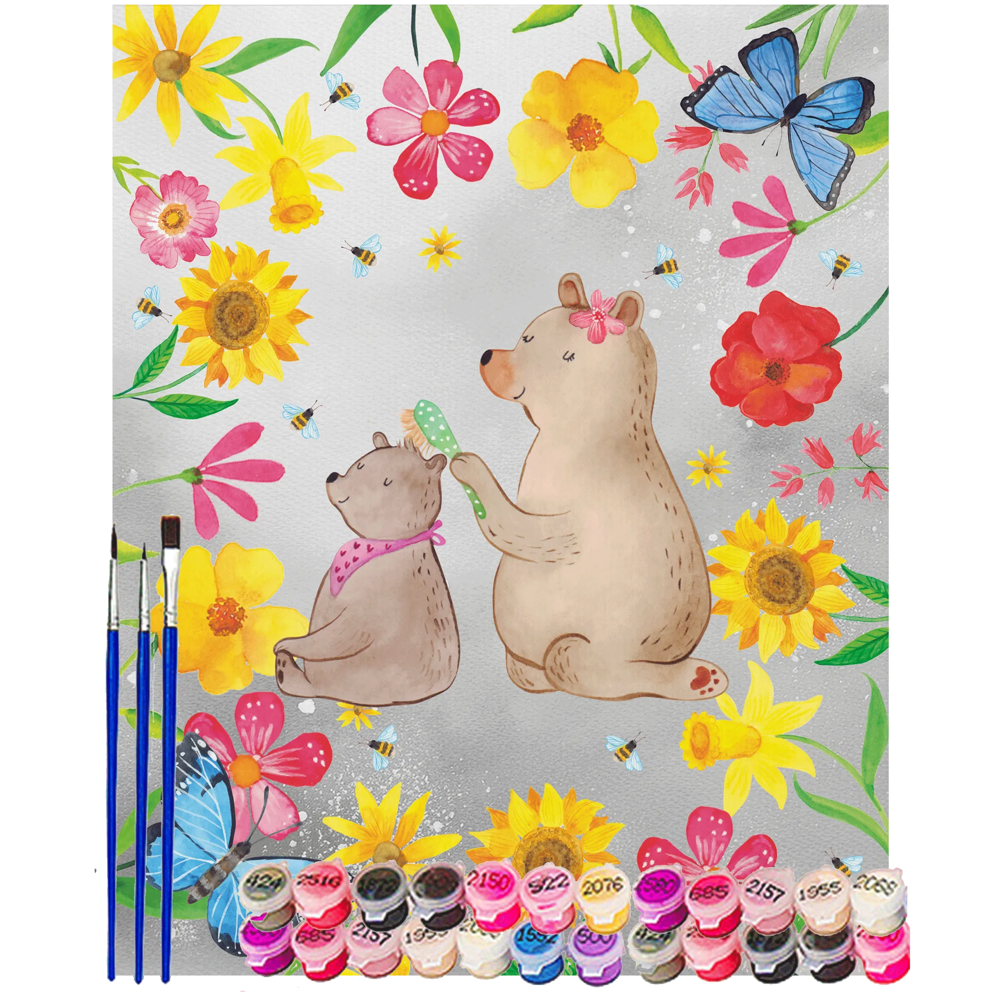 Malowanie według numerów niedźwiedź dziecko - Ohne Rahmen - 24 Farben (Standard) - Pastelowy szary