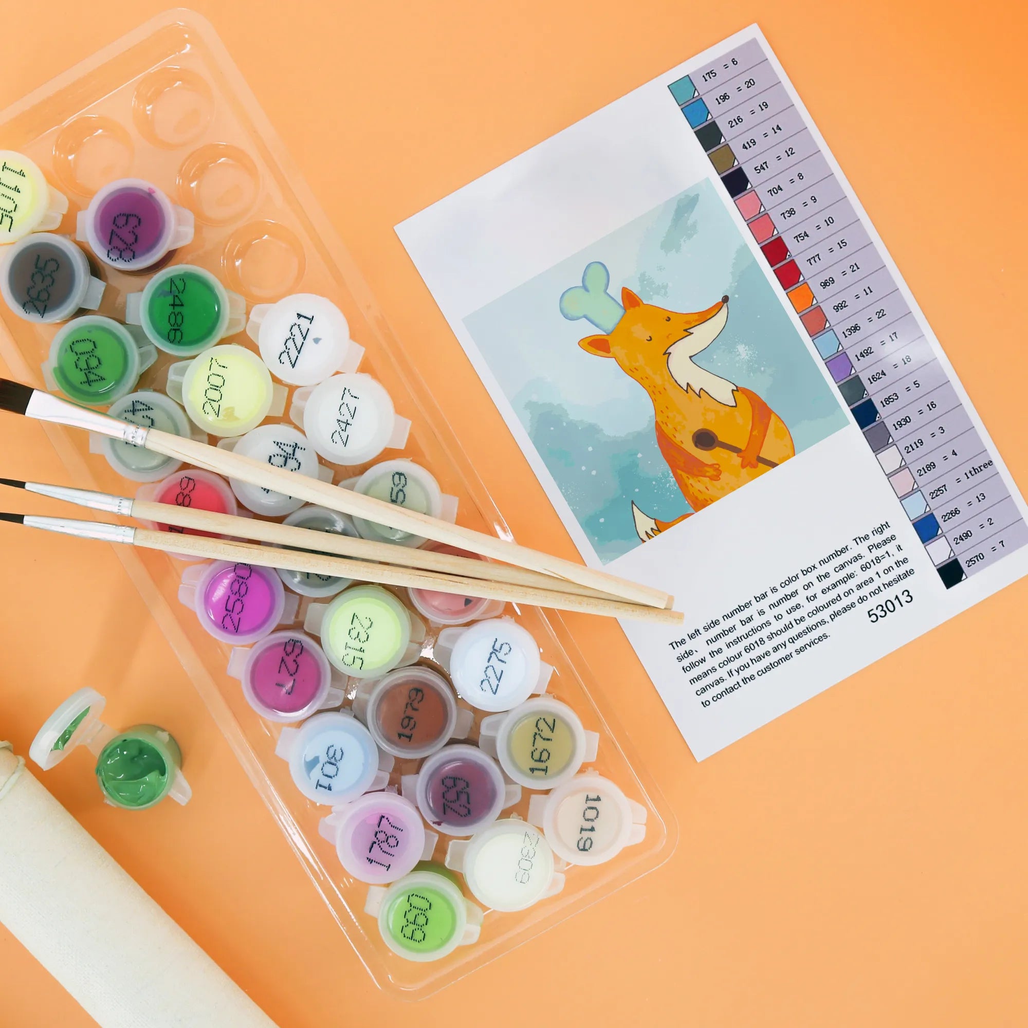 Entdecke das bezaubernde Malen nach Zahlen Set "Fuchs Koch" von Mr. & Mrs. Panda! Mit diesem kreativen Kunstwerk schaffst du dein eigenes Meisterwerk, das dein Zuhause verschönert.