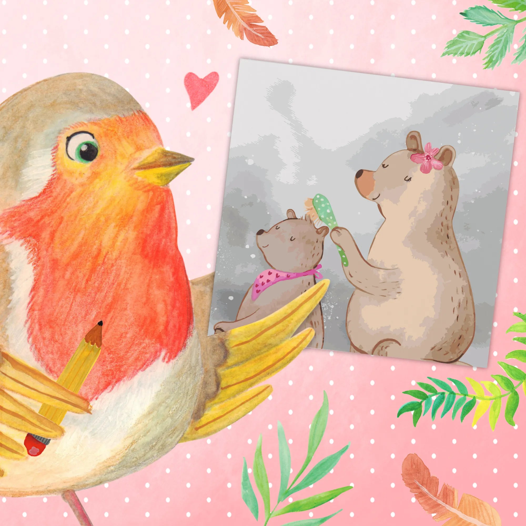Das Motiv zeigt einen großen Bären, der liebevoll das Haar seines kleinen Bärenbärchens mit einer gepunkteten Bürste frisiert – eine perfekte Darstellung der Zuneigung zwischen Mutter und Kind. Ideal für Muttertag, Geburtstage oder einfach um zu sagen: "Ich danke dir, Mama, für all die Liebe und Geduld!".