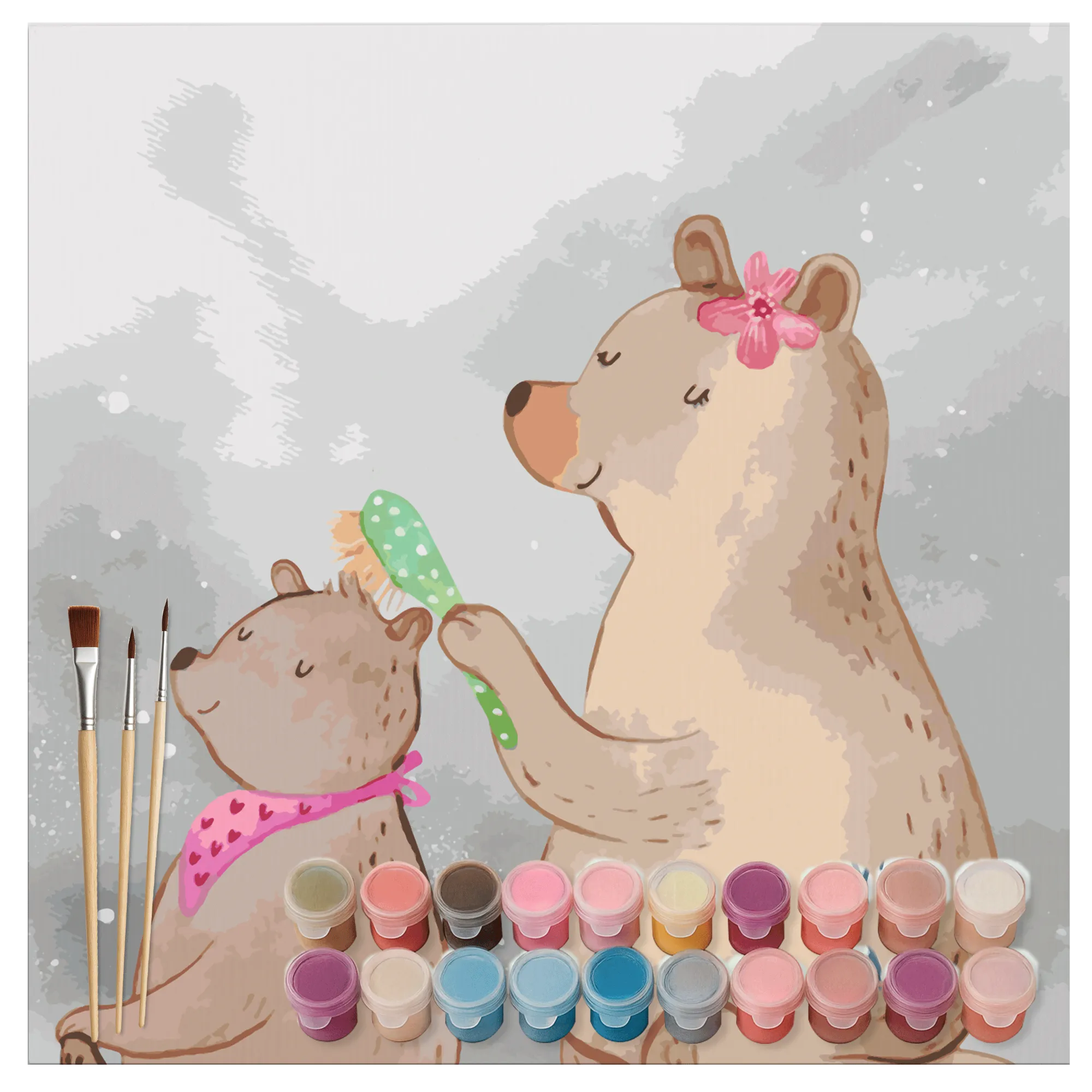 Das Malen nach Zahlen Set "Bär mit Kind" aus der Familien-Kollektion von Mr. & Mrs. Panda erfreut sich großer Beliebtheit und ist das perfekte Geschenk für liebevolle Mamas! Dieses wunderschöne und kreative Set ermöglicht es dir, mit 36 hochwertigen Acrylfarben ein einzigartiges Kunstwerk zu schaffen. Es zeigt einen großen Bären, der mit sanften Zügen das Haar seines kleinen Bärenkinds bürstet. Mit einem liebevollen Gesichtsausdruck und einer blumengeschmückten Haarspange strahlt der große Bär Fürsorge und Zuneigung aus. Das kleine Bärchen genießt diesen Moment entspannt und schließt die Augen. Dieses Motiv vermittelt die warme Atmosphäre der Familie und zeigt, wie wichtig die Bindung zwischen Mama und Kind ist.