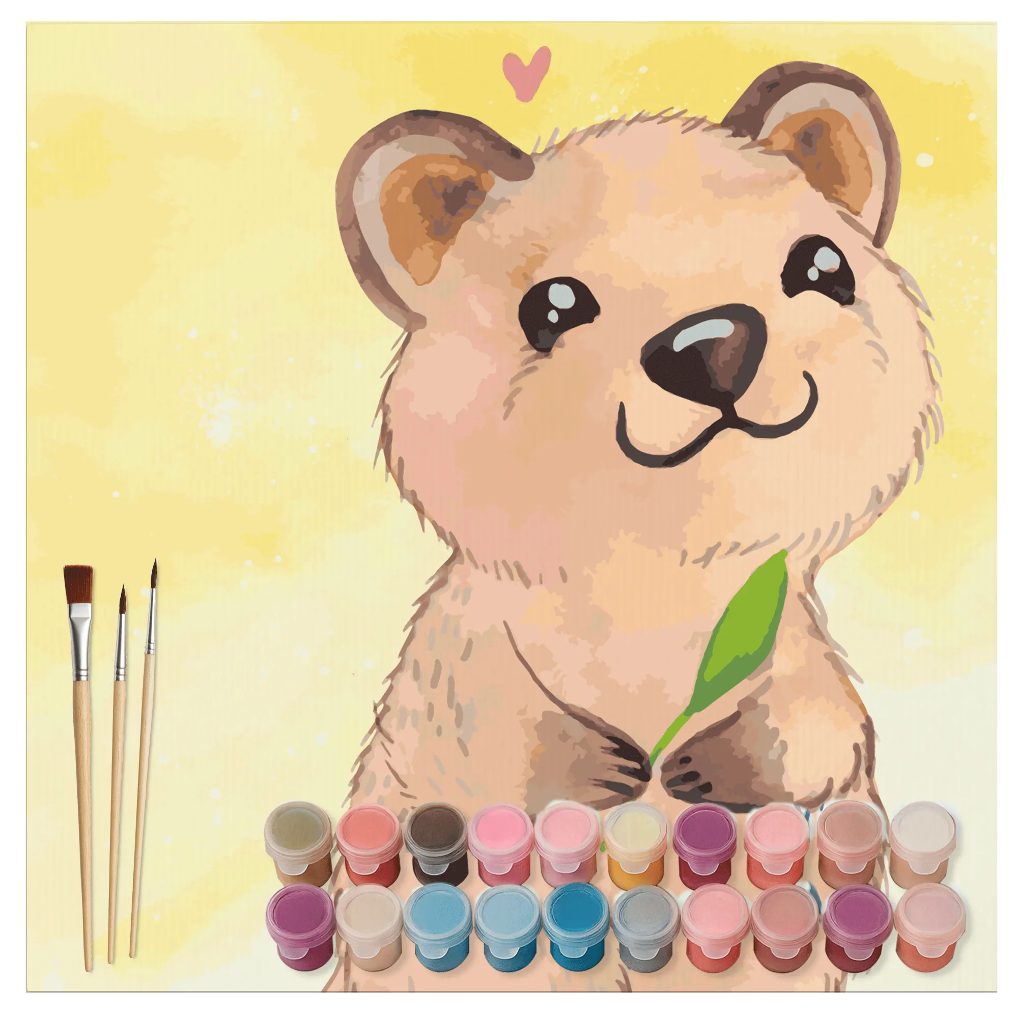 Entdecke das wunderschöne Malen nach Zahlen Set "Quokka Happy" aus der Small World Kollektion von Mr. & Mrs. Panda! Dieses kreative Set ist nicht nur ein tolles DIY-Projekt für sich selbst, sondern auch das perfekte Geschenk für Freunde und Familie, die Freude und Kreativität lieben.
