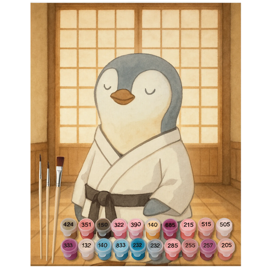 Malowanie według numerów Pingwin karate Design - Ohne Rahmen - 24 Farben (Standard)