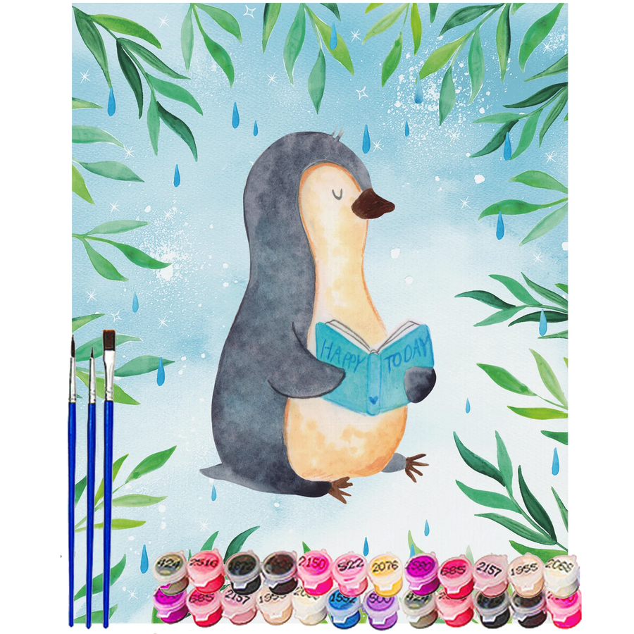 Entdecke die zauberhafte Welt des Malens mit unserem einzigartigen Malen nach Zahlen Set von Mr. & Mrs. Panda! Mit dem niedlichen Pinguin-Motiv, der begeistert ein Buch liest, tauchst du in eine kreative Auszeit ein.