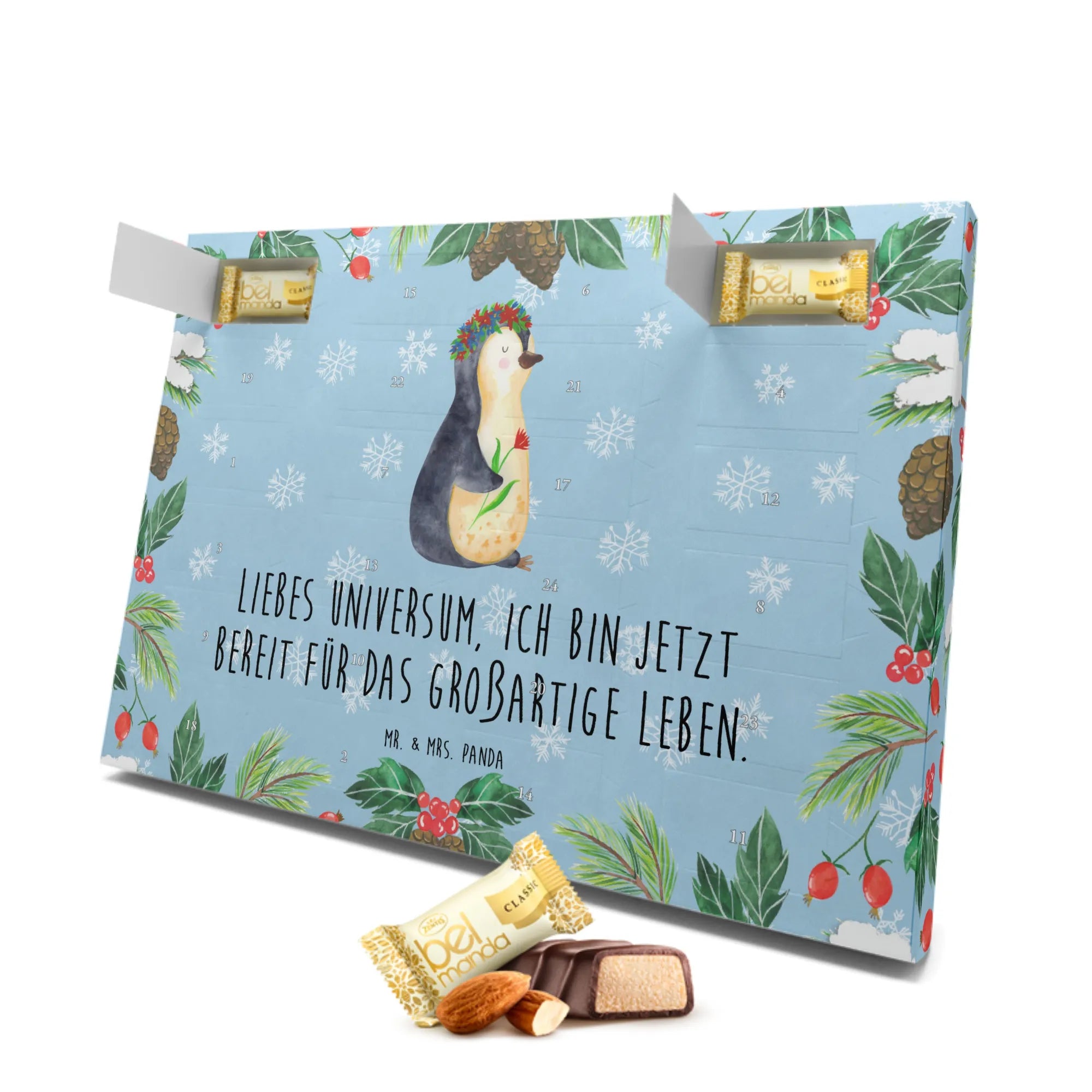 Der Marzipan Adventskalender mit dem süßen Pinguin-Motiv Blumenkranz von Mr. & Mrs. Panda ist das perfekte Geschenk für alle, die die Vorweihnachtszeit mit leckerem Marzipan versüßen möchten. Dieser fantastische Adventskalender kombiniert Genuss und Freude auf besonders liebevolle Weise. Jeder der 24 Türchen birgt ein köstliches, edles Marzipan-Praliné, das in mundgerechten Häppchen auf dich wartet.