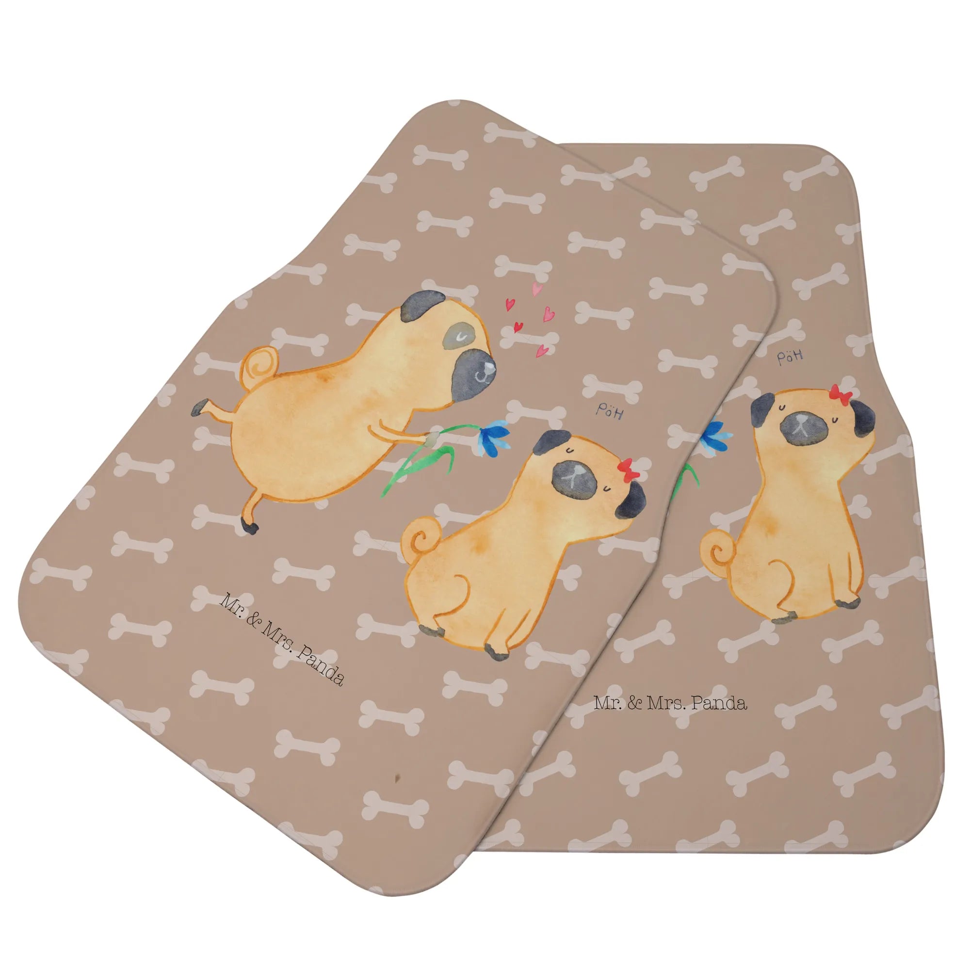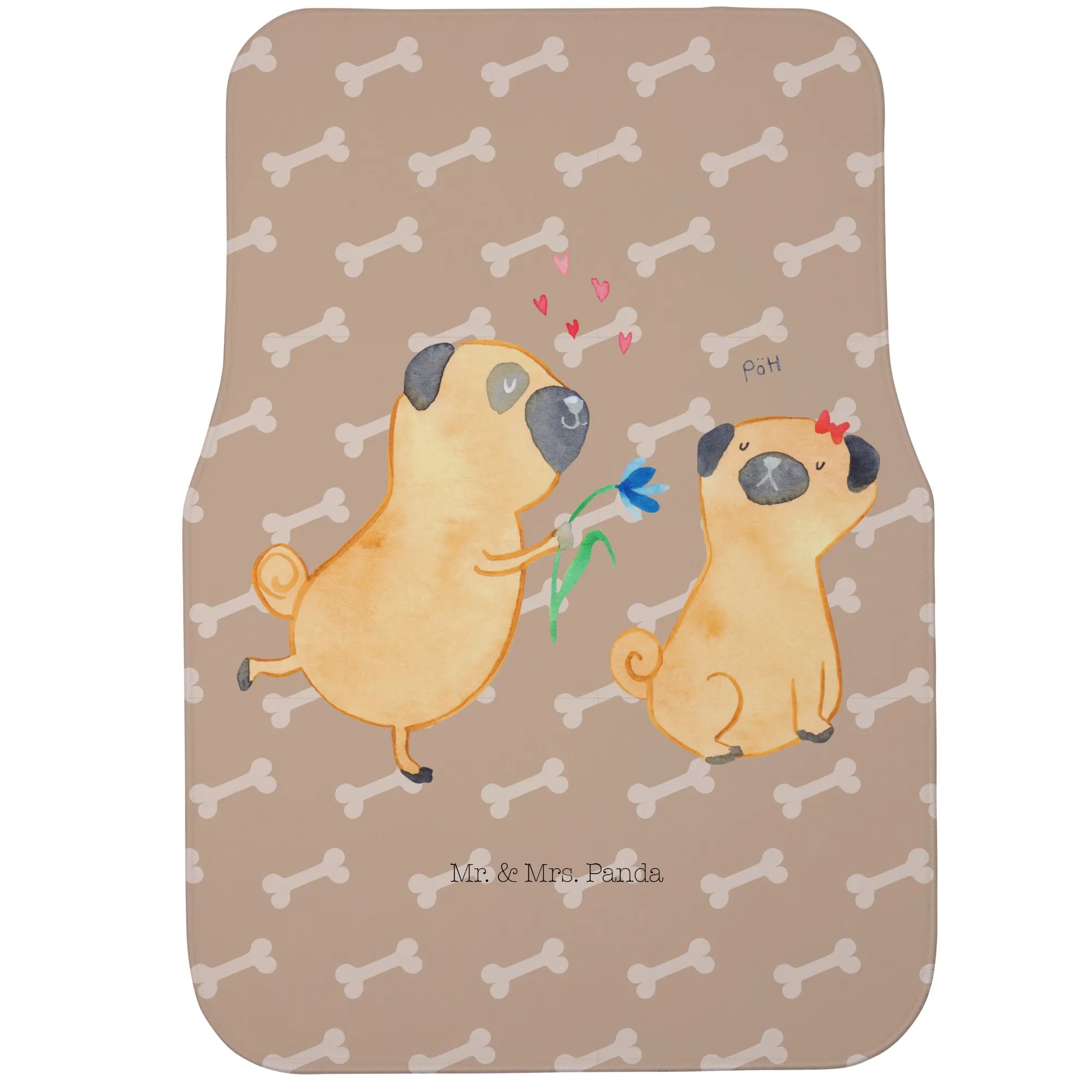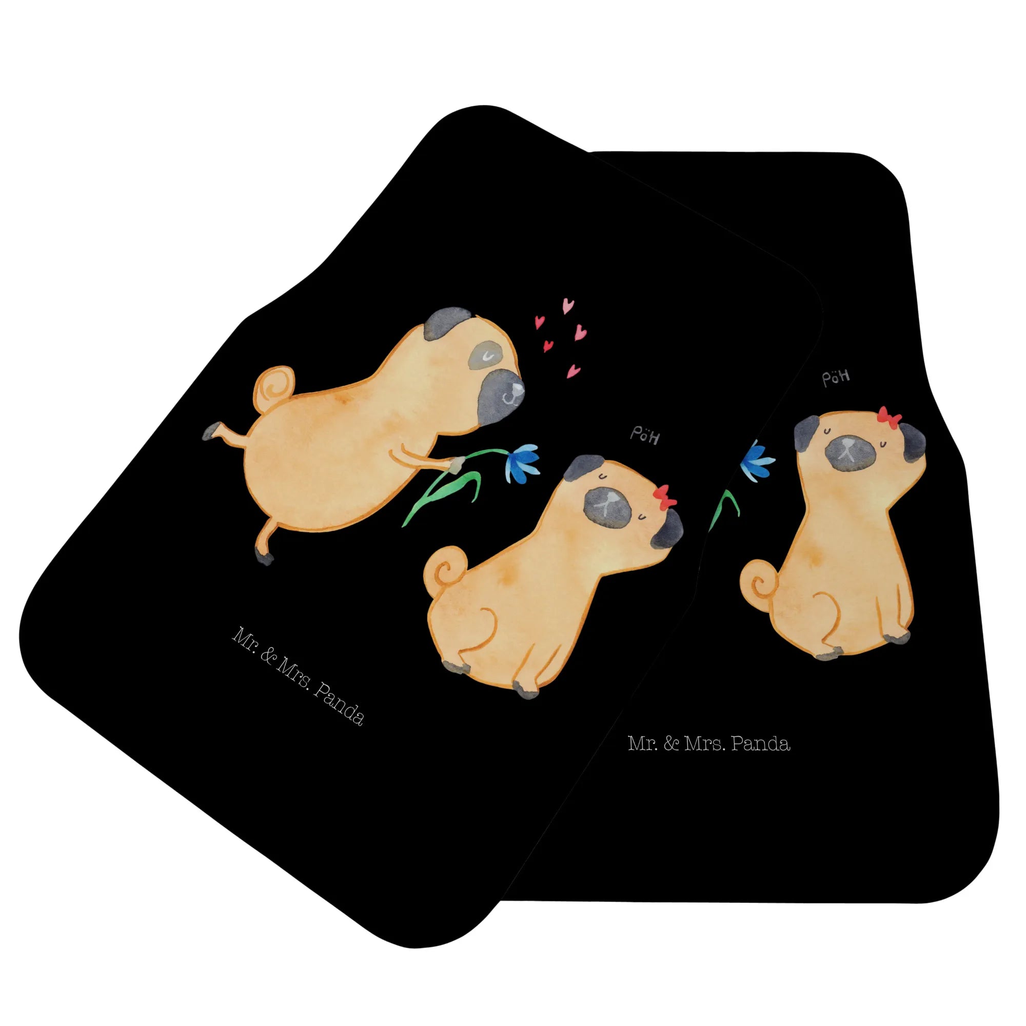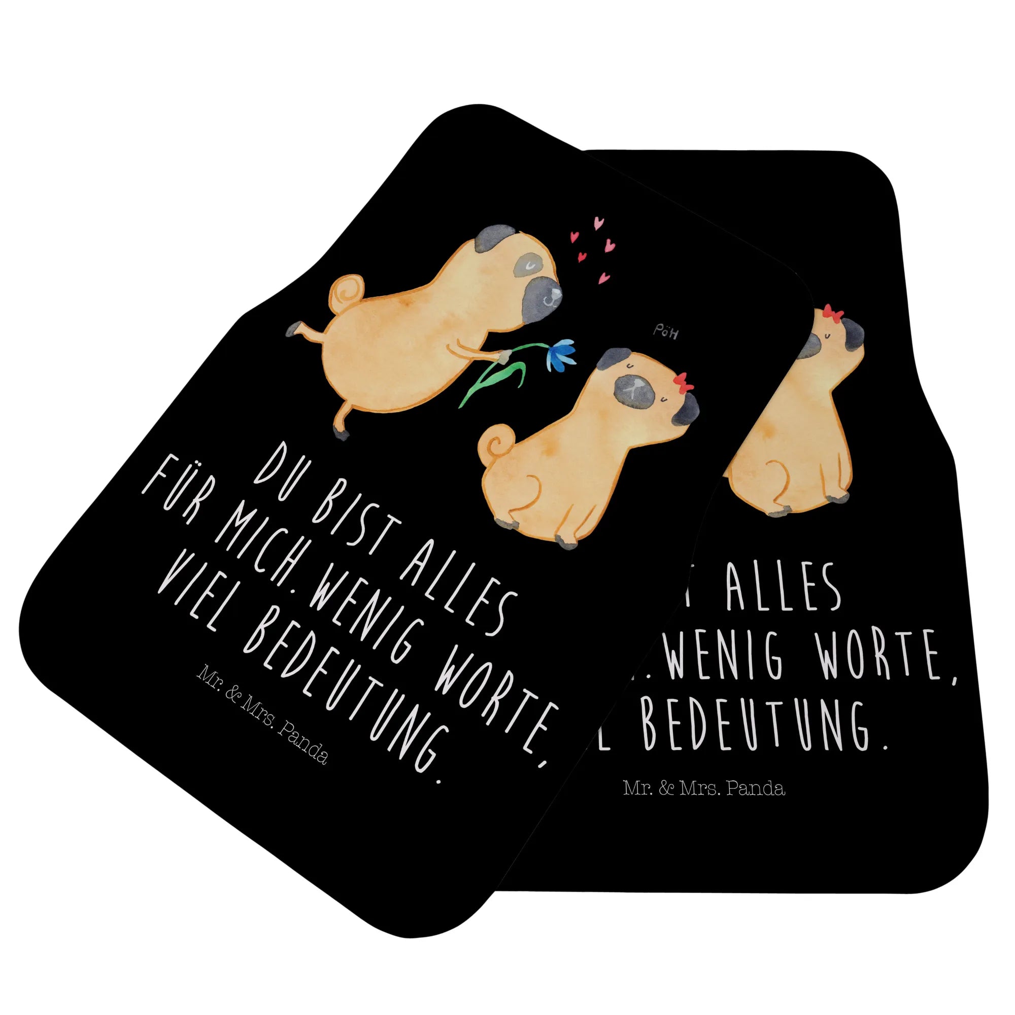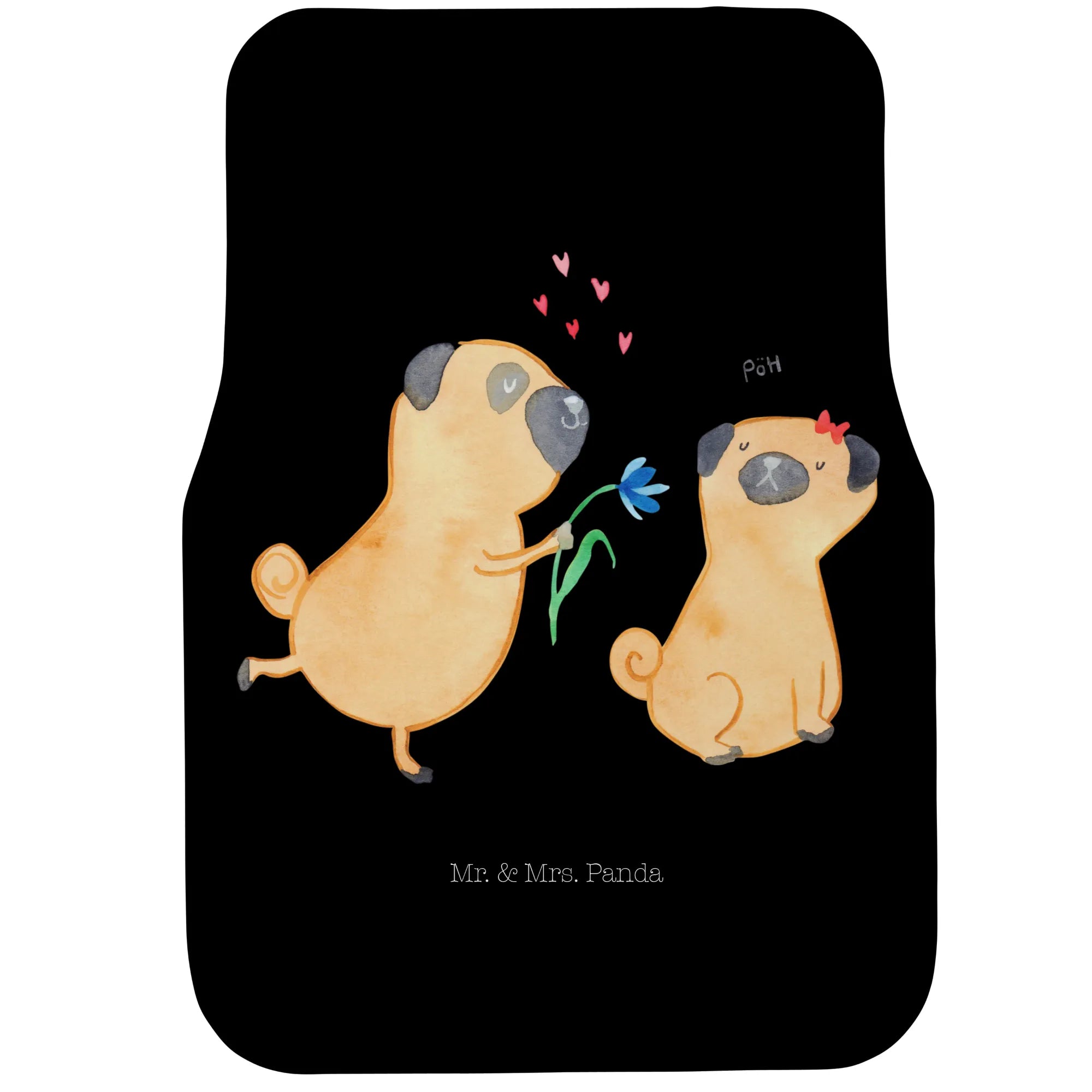 Mata samochodowa dla kierowcy mops Zakochani - z napisem - Czarny