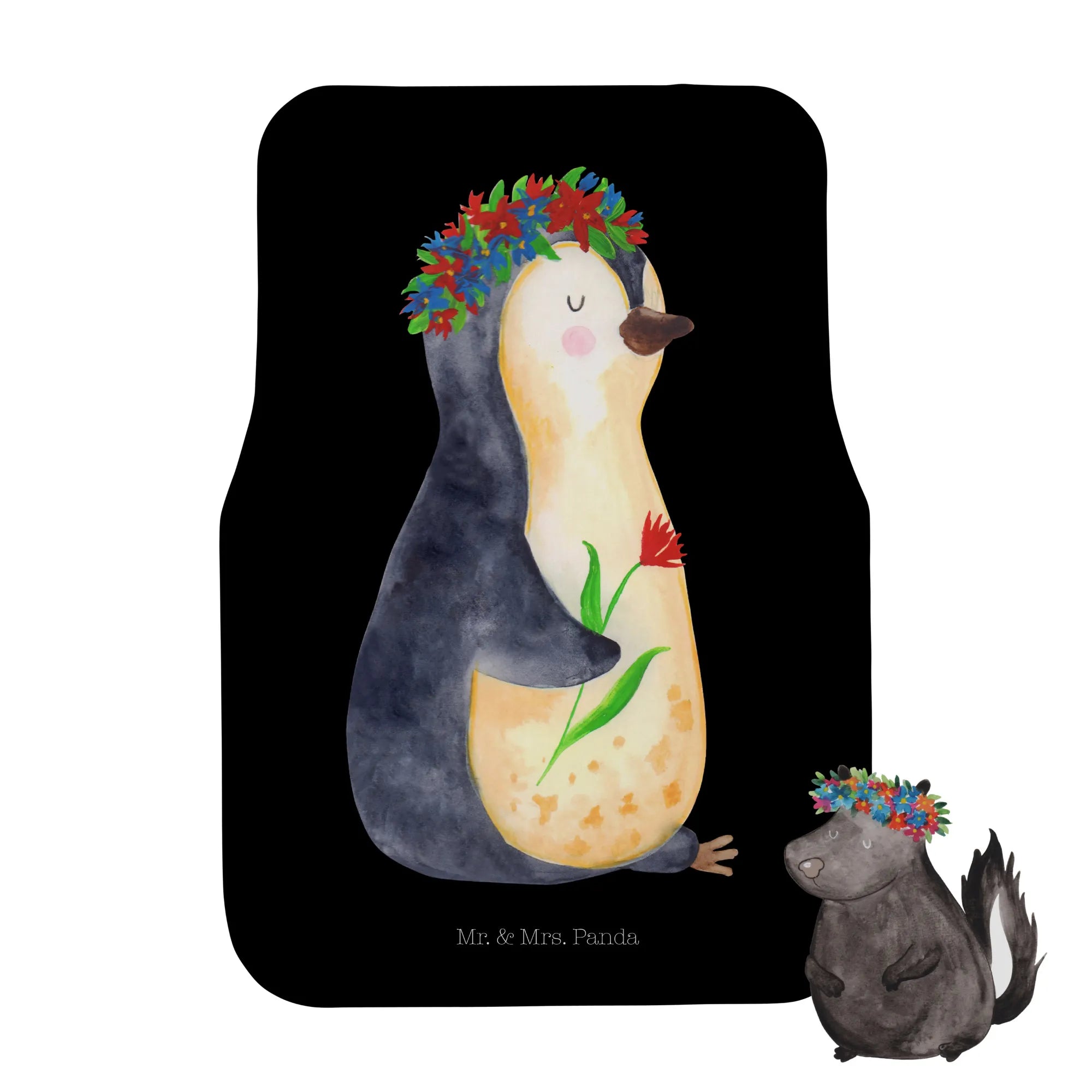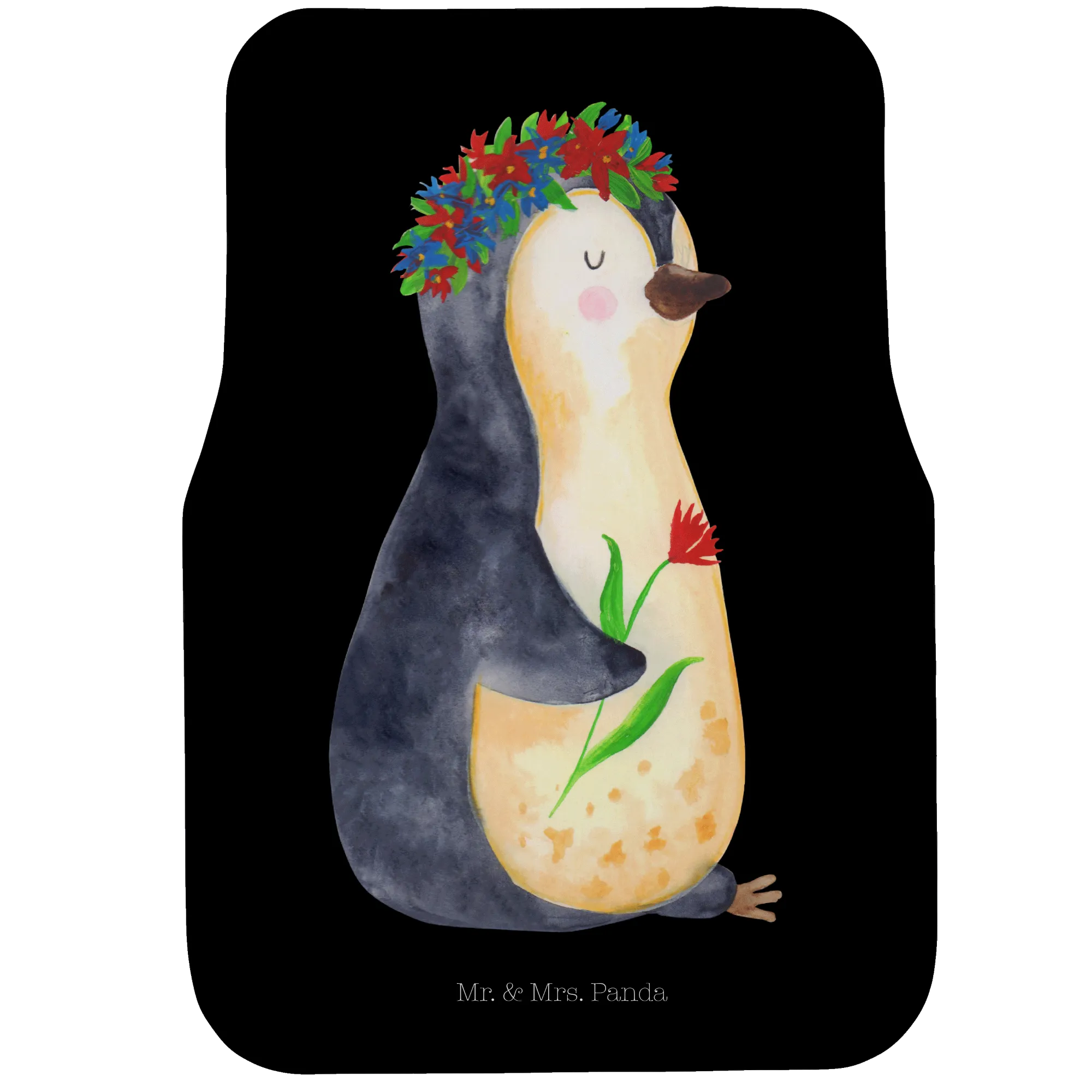 Mata samochodowa dla kierowcy pingwin kwiaty - z napisem - Czarny