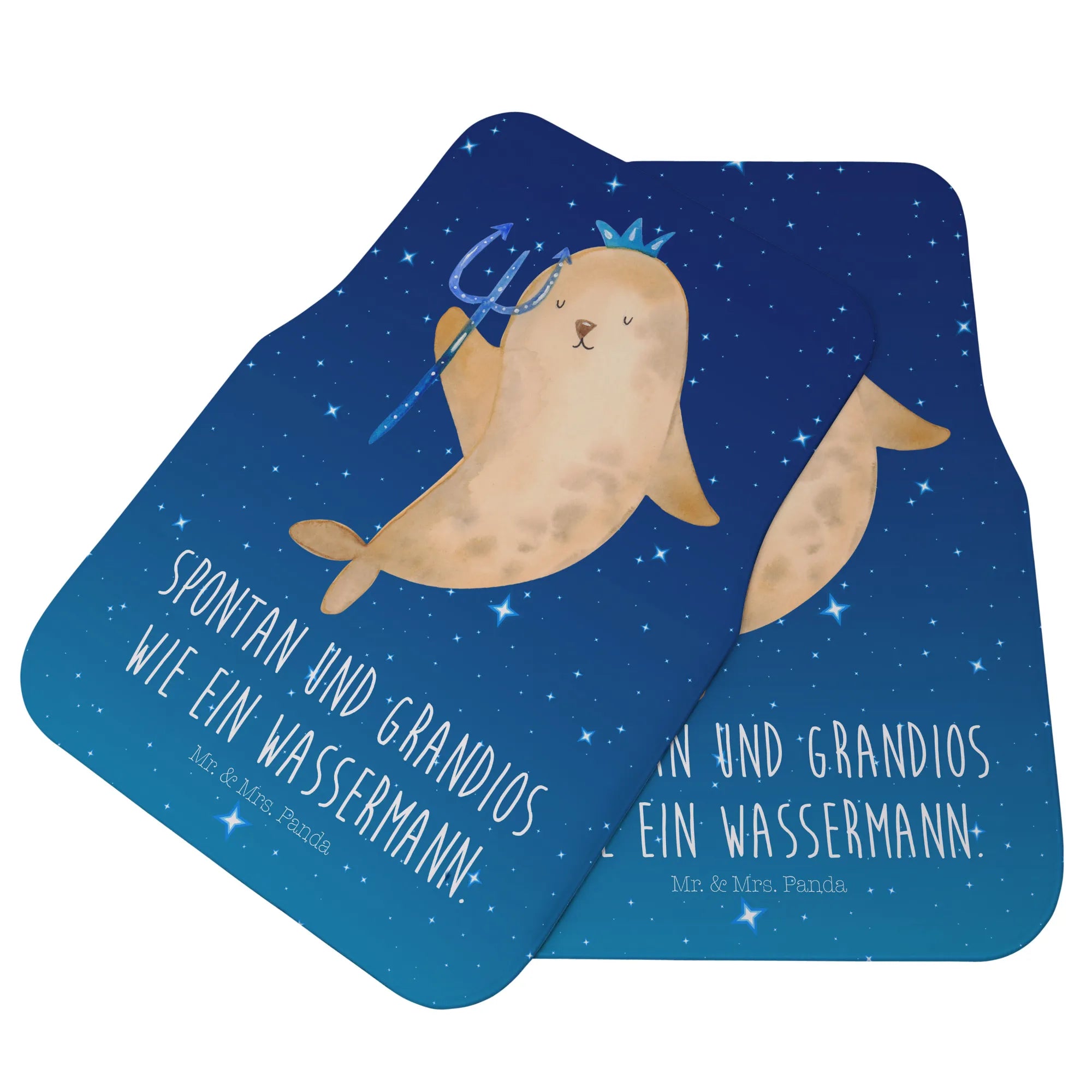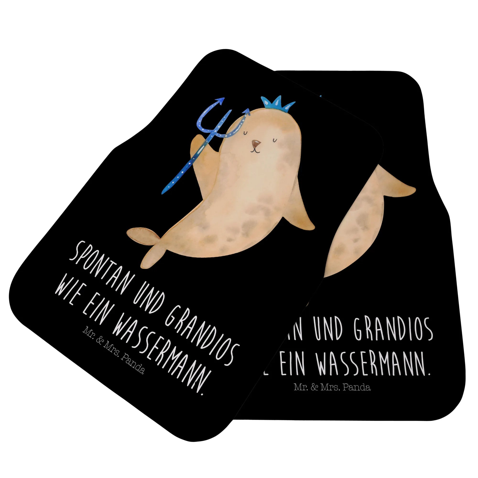 Mata samochodowa dla kierowcy znak zodiaku Wodnik - z napisem - Czarny