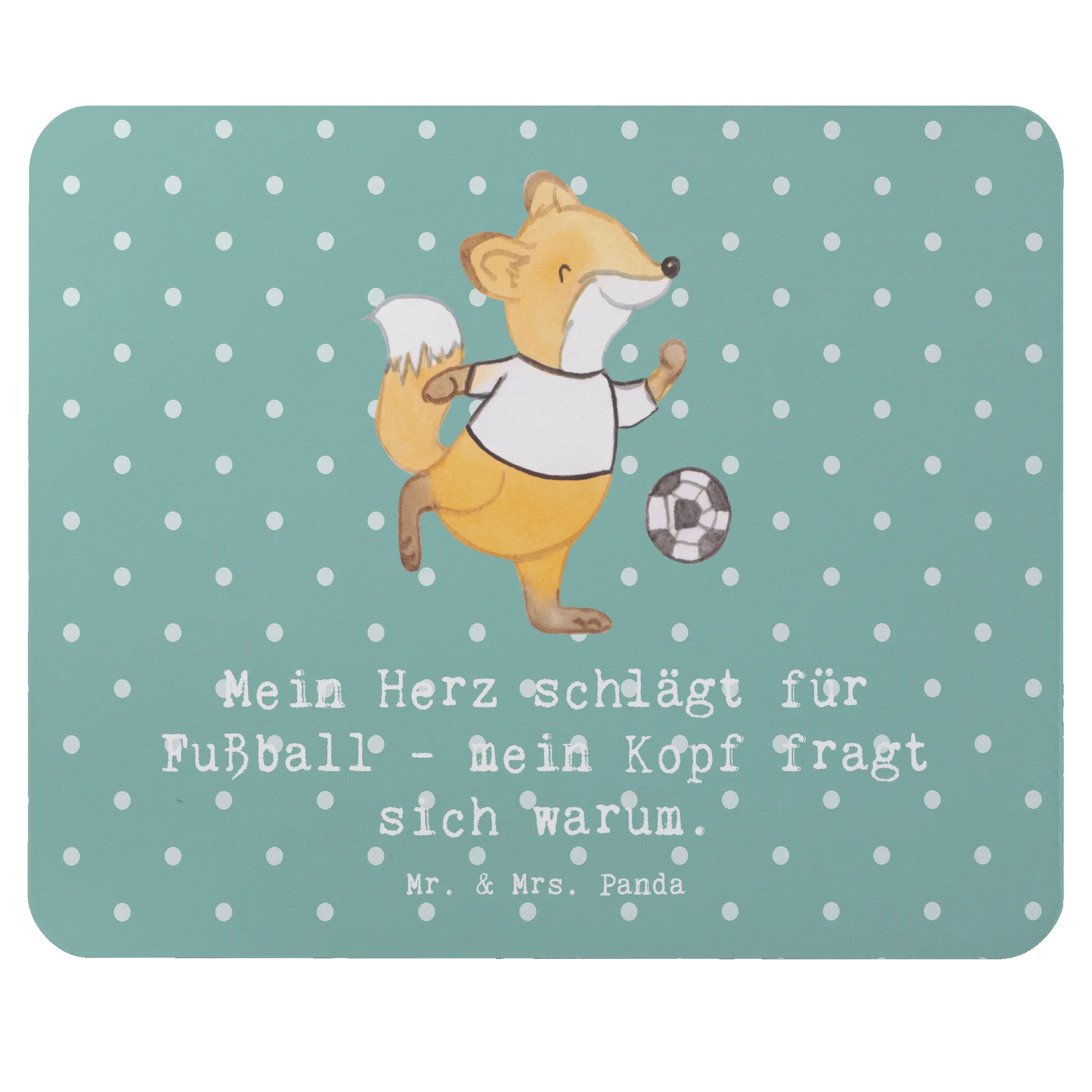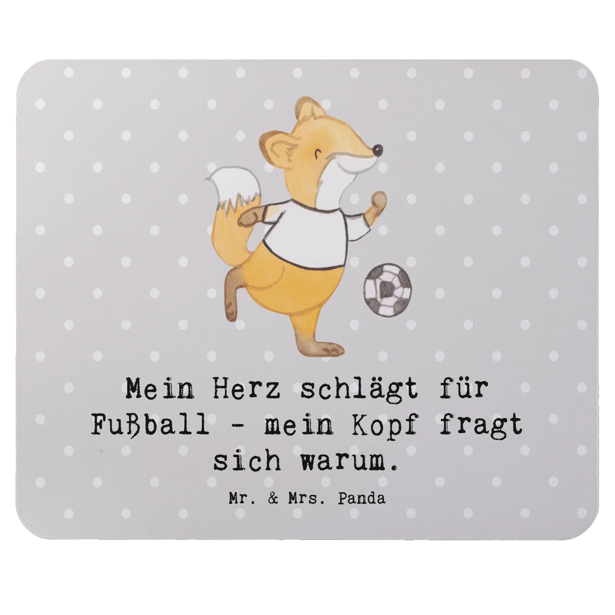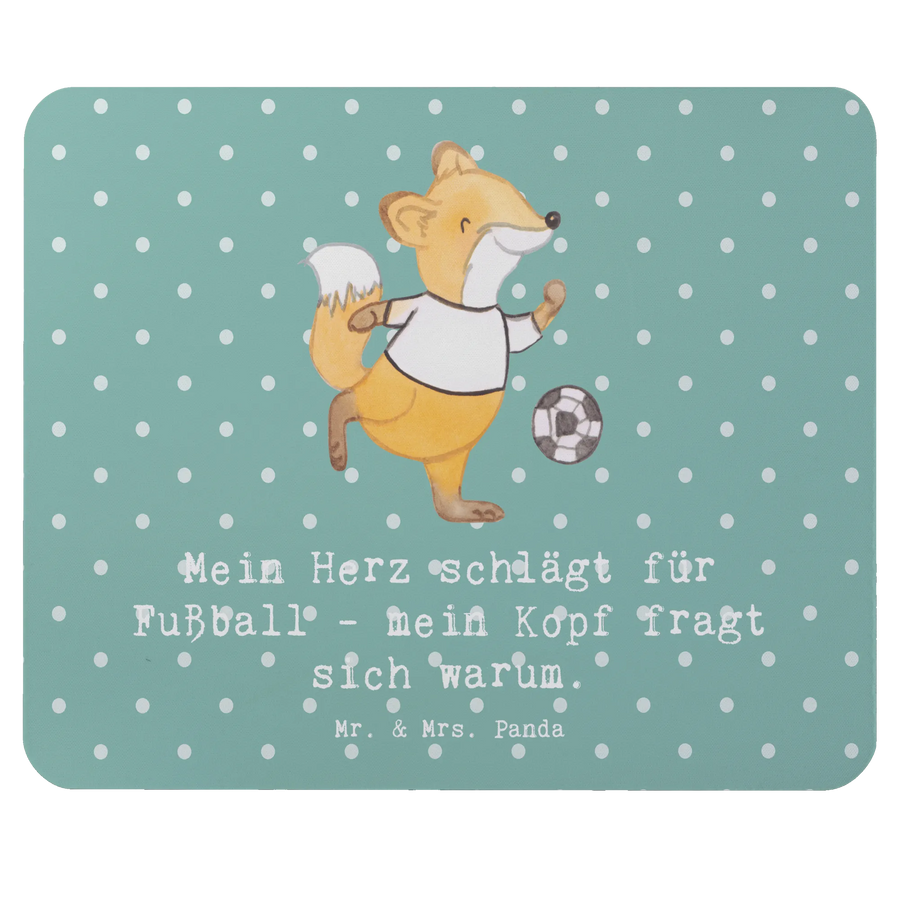 Wenn du auf der Suche nach einem besonderen Geschenk für den sportbegeisterten Menschen in deinem Leben bist, dann ist unser Mr. & Mrs. Panda Mauspad mit dem liebevollen Motiv "Mein Herz schlägt für Fußball - mein Kopf fragt sich warum" genau das Richtige!