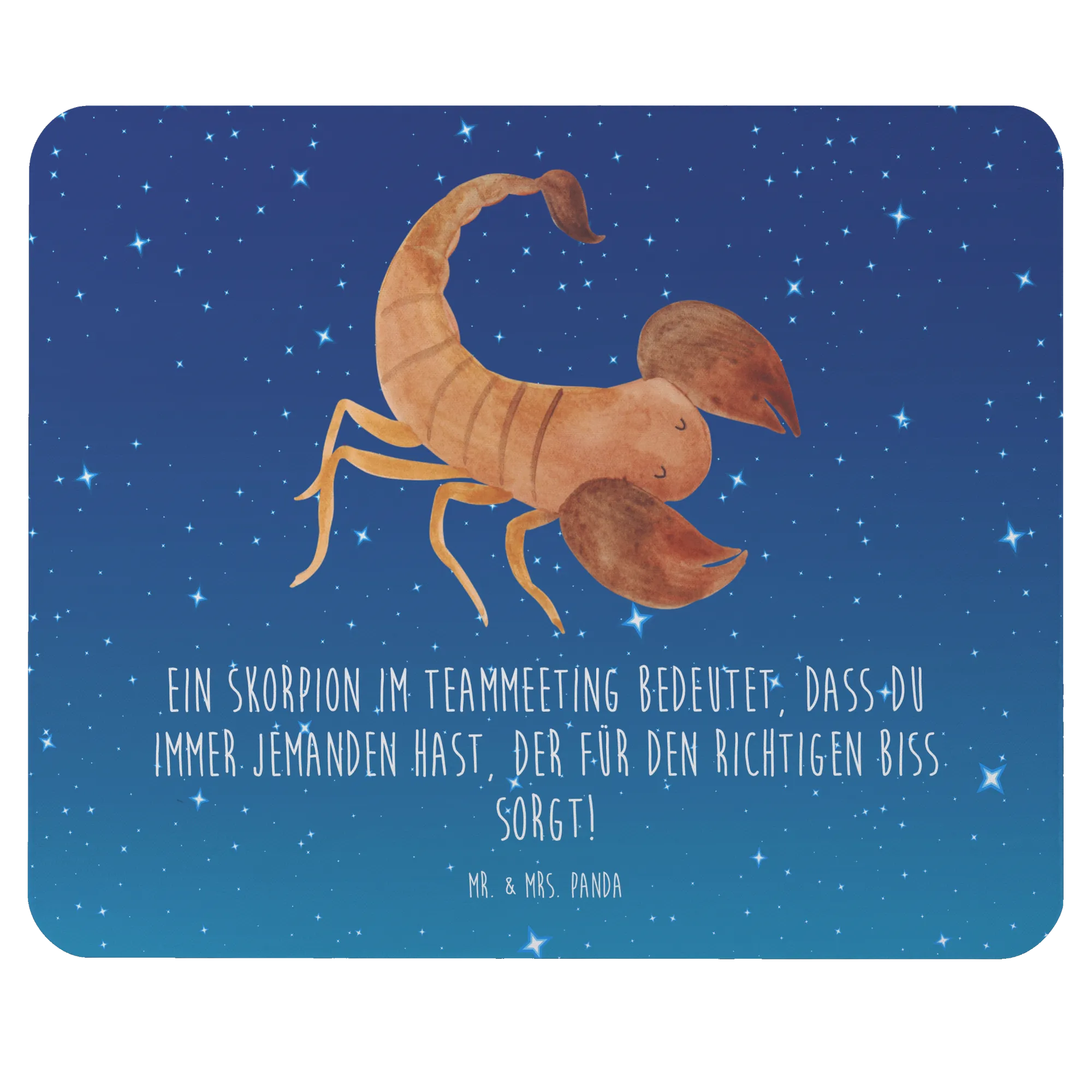 Das perfekte Mauspad für Skorpion-Geborene ist da! Das liebevoll gestaltete Mauspad von Mr. & Mrs. Panda ist nicht nur ein praktisches Computerzubehör, sondern auch ein echter Hingucker an jedem Arbeitsplatz. Mit dem cleveren Spruch "Ein Skorpion im Teammeeting bedeutet, dass du immer jemanden hast, der für den richtigen Biss sorgt!" bringt es humorvolle Leichtigkeit in den Arbeitsalltag und hat gleichzeitig eine klare Aussage über die Stärken von Skorpionen.