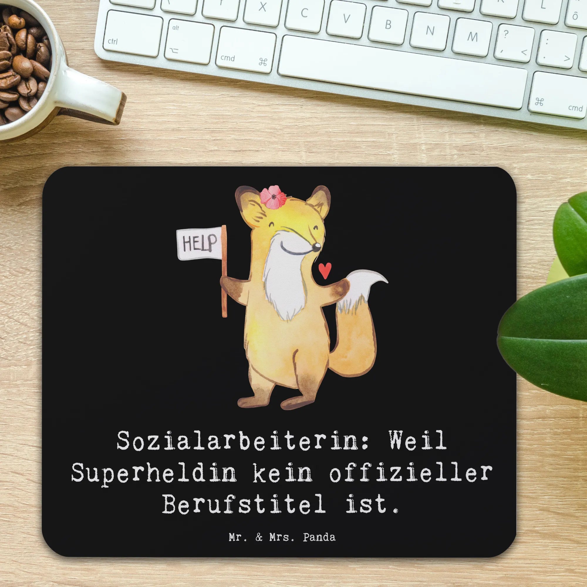 Das Mauspad "Sozialarbeiterin: Weil Superheldin kein offizieller Berufstitel ist" von Mr. & Mrs. Panda ist das perfekte Geschenk für alle engagierten Sozialarbeiterinnen! Dieses einzigartige Mauspad aus hochwertigem Zellkautschuk vereint Funktionalität und liebevolles Design. Die angenehme Oberfläche sorgt für ein sanftes Gleiten der Maus und lässt sich wunderbar im Büro oder im Homeoffice nutzen. Mit den Maßen von 240 mm x 190 mm x 5 mm bietet es genügend Platz für Deine Maus und passt problemlos auf jeden Schreibtisch.
