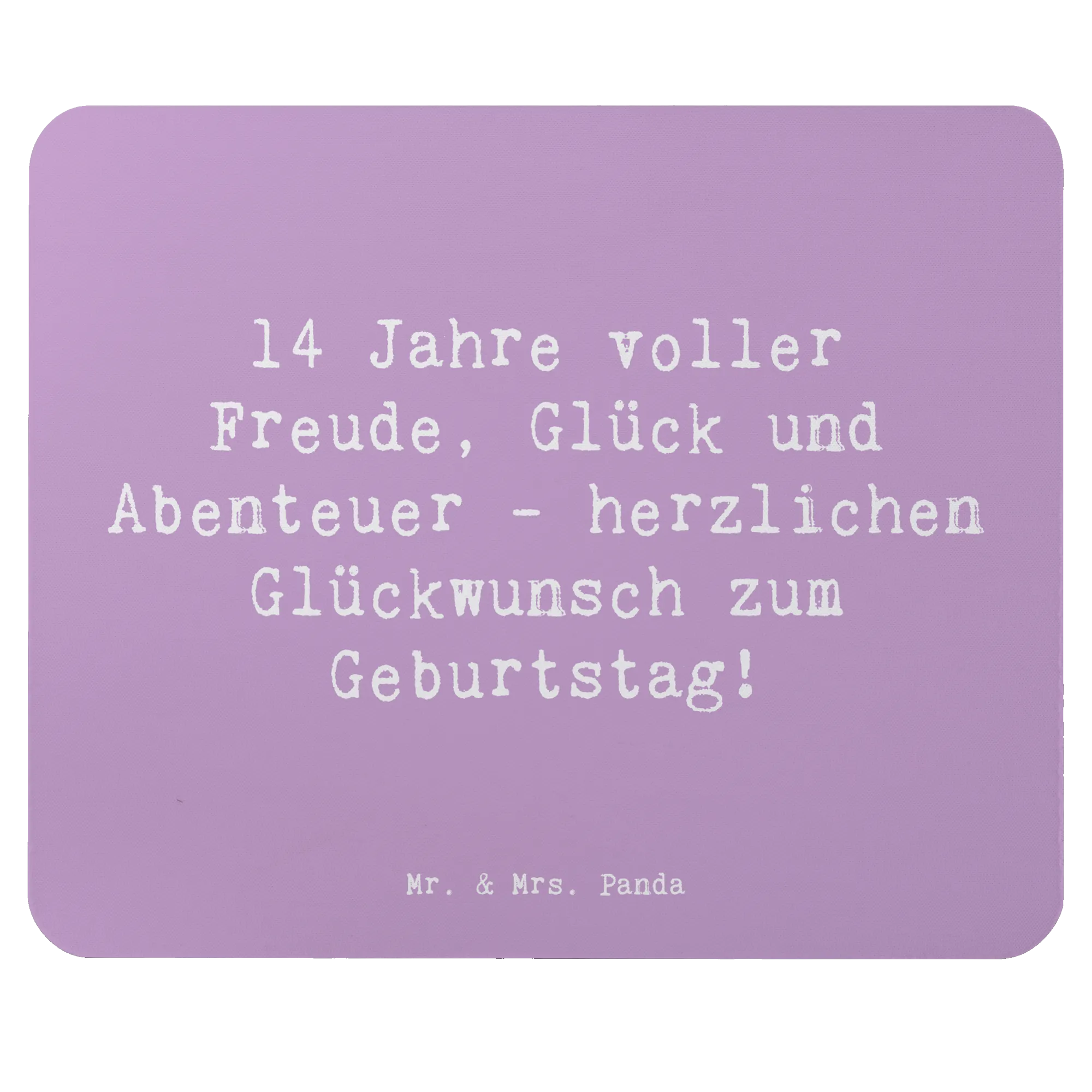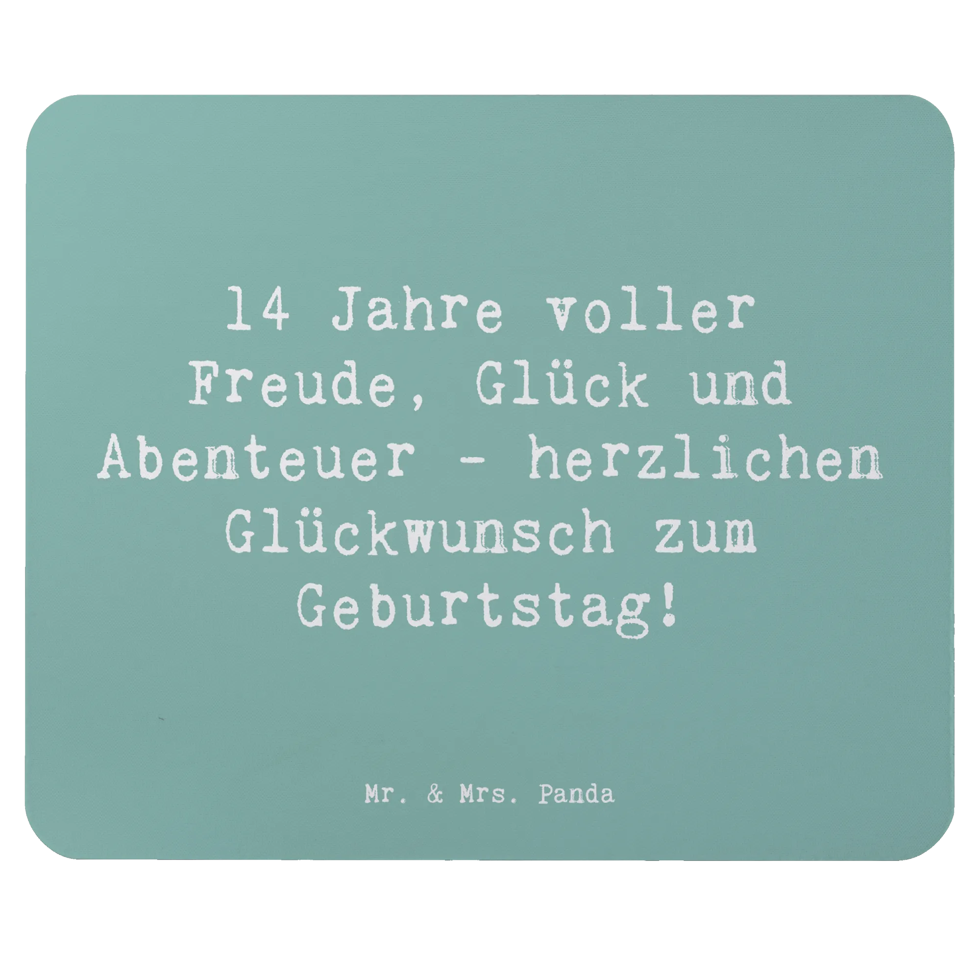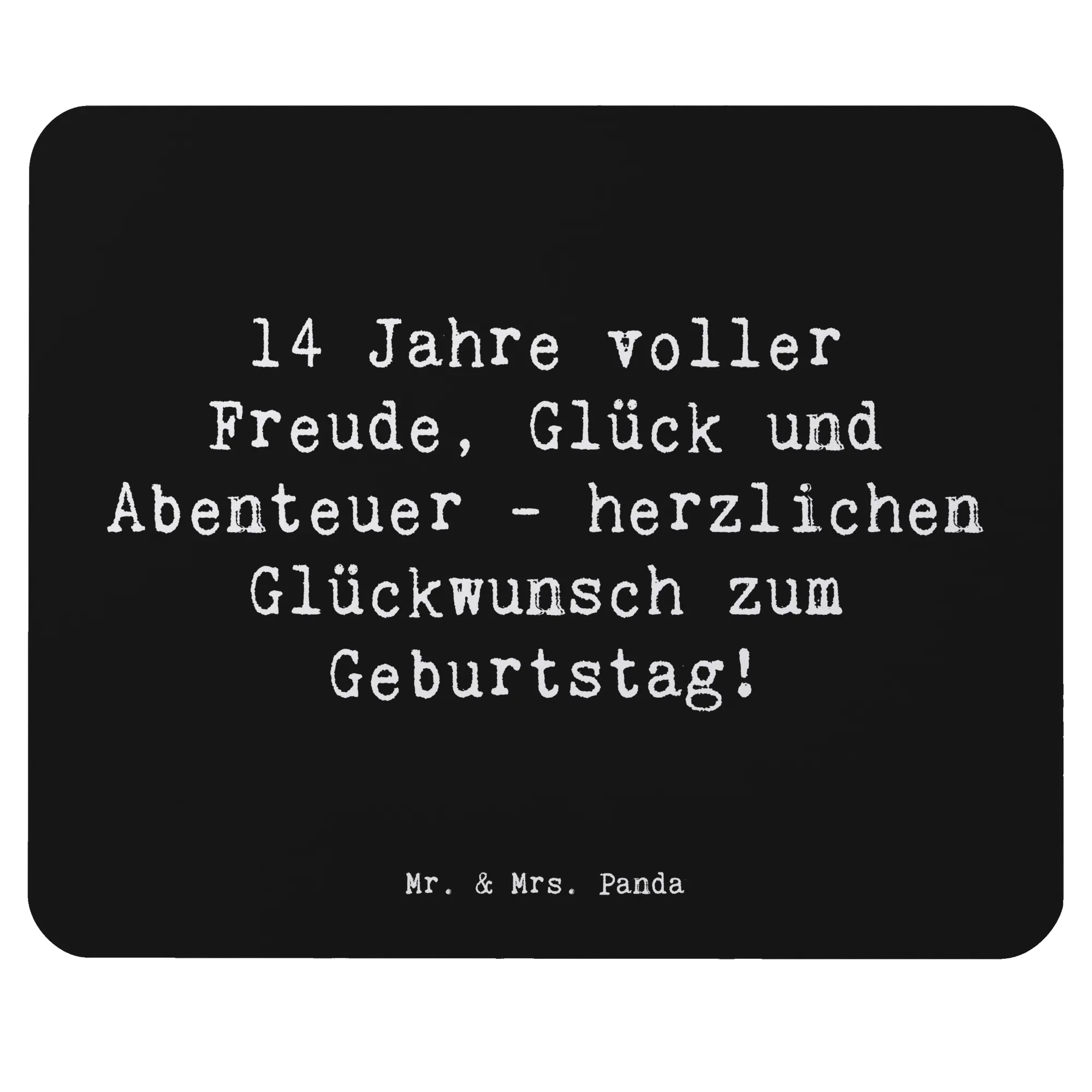 Das Mauspad eignet sich nicht nur als praktisches PC Zubehör, sondern ist auch eine schöne Möglichkeit, gute Wünsche und Geburtstagsglückwünsche auszudrücken. Jedes Mal, wenn der Beschenkte am Computer arbeitet, wird er oder sie an die vielen glücklichen Momente des 14. Lebensjahres erinnert. Ein tolles Geburtstagsgeschenk, das sowohl in der Schule als auch im Homeoffice kommt von Mr. & Mrs. Panda!