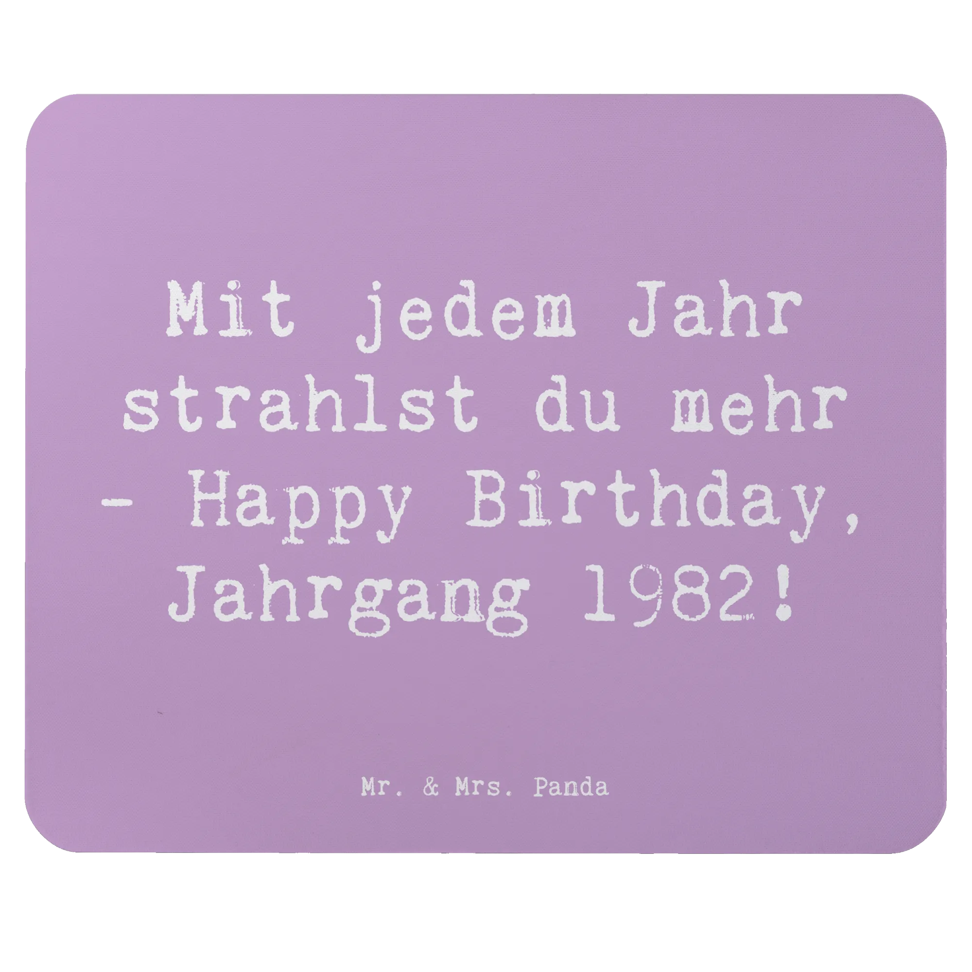 Mit einem originellen Design, das den Spruch "Mit jedem Jahr strahlst du mehr - Happy Birthday, Jahrgang 1982!" trägt, bringt das Mauspad nicht nur Freude in den Arbeitsalltag, sondern erinnert den Beschenkten auch jedes Mal an diesen besonderen Tag.