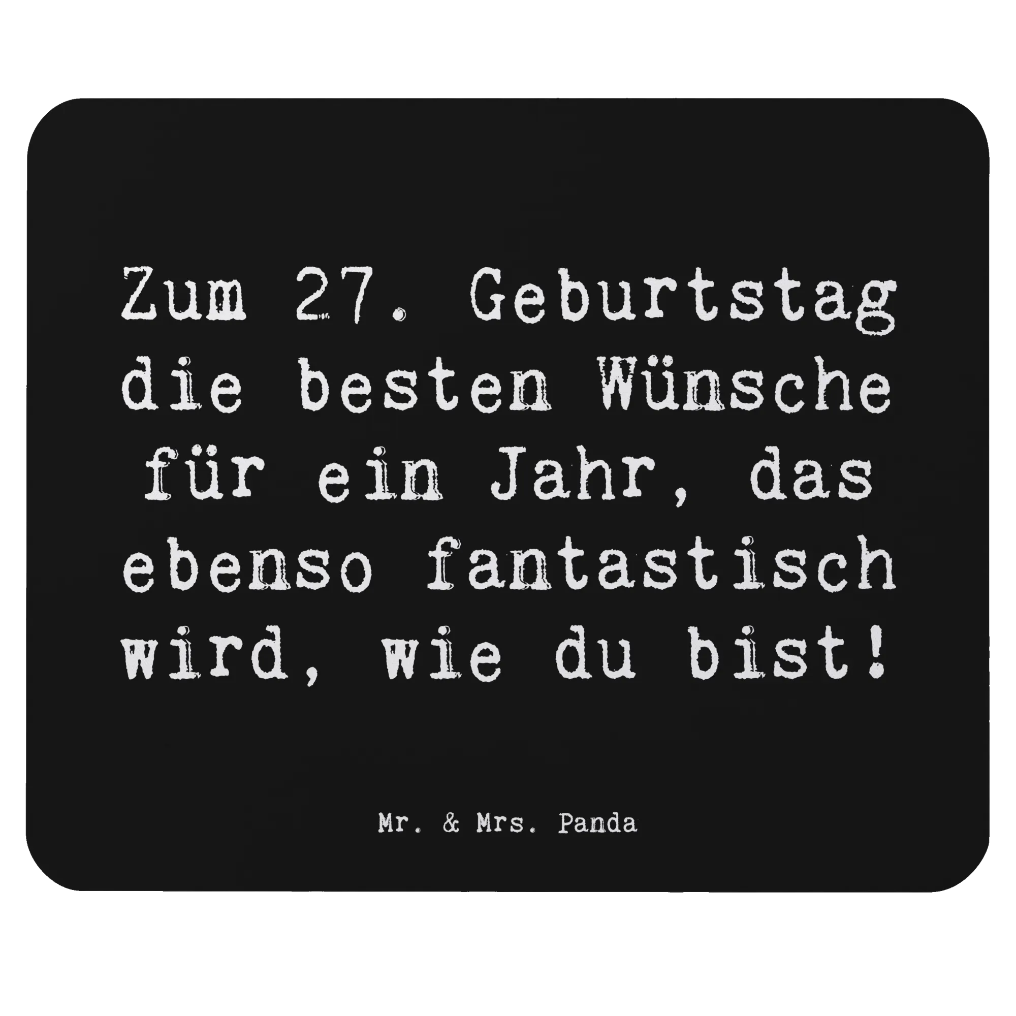 Suchst du das perfekte Geschenk zum 27. Geburtstag? Dann ist unser bezauberndes Mauspad von Mr. & Mrs. Panda genau das Richtige! Dieses einzigartige Mauspad ist nicht nur ein praktischer Begleiter für dein Homeoffice oder Büro, sondern auch ein Herzstück, das jedem Arbeitsbereich eine persönliche Note verleiht. Bedruckt mit dem liebevollen Slogan "Zum 27. Geburtstag die besten Wünsche für ein Jahr, das ebenso fantastisch wird, wie du bist!", versprüht dieses Mauspad Lebensfreude und gute Laune.
