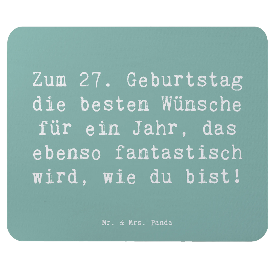 Suchst du das perfekte Geschenk zum 27. Geburtstag für einen Freund oder eine Freundin? Dann ist unser Mauspad von Mr. & Mrs. Panda genau die richtige Wahl! Mit dem liebevollen Slogan "Zum 27. Geburtstag die besten Wünsche für ein Jahr, das ebenso fantastisch wird, wie du bist!" wird dieses Mauspad nicht nur zum praktischen Büroaccessoire, sondern auch zu einem kleinen Glücksbringer. Es erinnert jeden Tag daran, dass das neue Lebensjahr aufregend und voller Möglichkeiten ist.