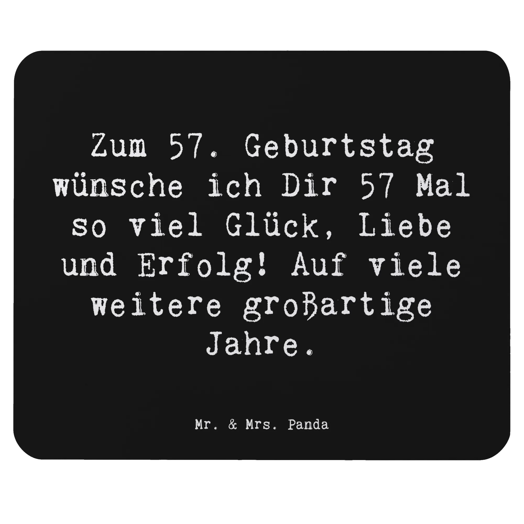 Bist Du auf der Suche nach dem perfekten Geschenk für einen ganz besonderen Menschen, der bald seinen 57. Geburtstag feiert? Dann ist das Mauspad "57. Geburtstag" aus der einzigartigen Geburtstag Alter Kollektion von Mr. & Mrs. Panda genau das Richtige für Dich! Mit dem Slogan "Zum 57. Geburtstag wünsche ich Dir 57 Mal so viel Glück, Liebe und Erfolg! Auf viele weitere großartige Jahre." ist dieses Mauspad nicht nur ein praktisches Accessoire, sondern auch eine liebevolle Geste, die von Herzen kommt.