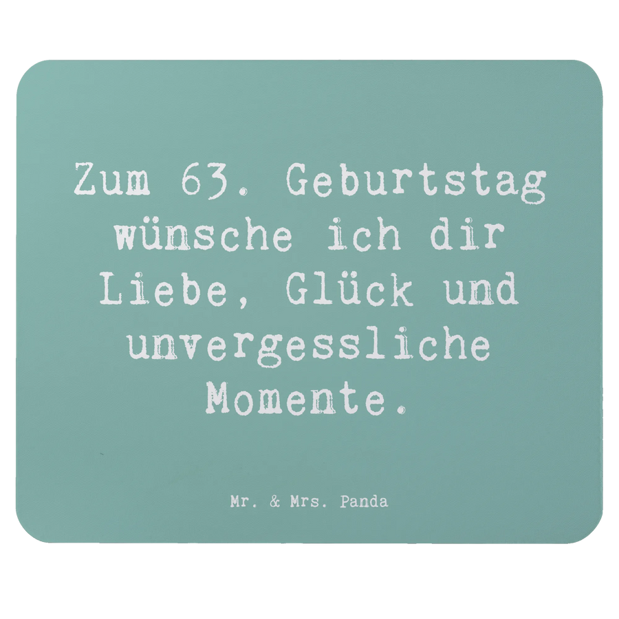 Das einzigartige Mauspad zum 63. Geburtstag von Mr. & Mrs. Panda ist das perfekte Geschenk für alle, die diesen besonderen Tag gebührend feiern möchten. Egal, ob du es für einen Freund, ein Familienmitglied oder sogar für dich selbst suchst, dieses Mauspad bringt Freude und Stil in jedes Arbeitszimmer oder Homeoffice. Mit dem liebevollen Slogan „Zum 63. Geburtstag wünsche ich dir Liebe, Glück und unvergessliche Momente.“ spricht es nicht nur das Herz an, sondern eignet sich auch wunderbar als Glückwunschgeschenk.