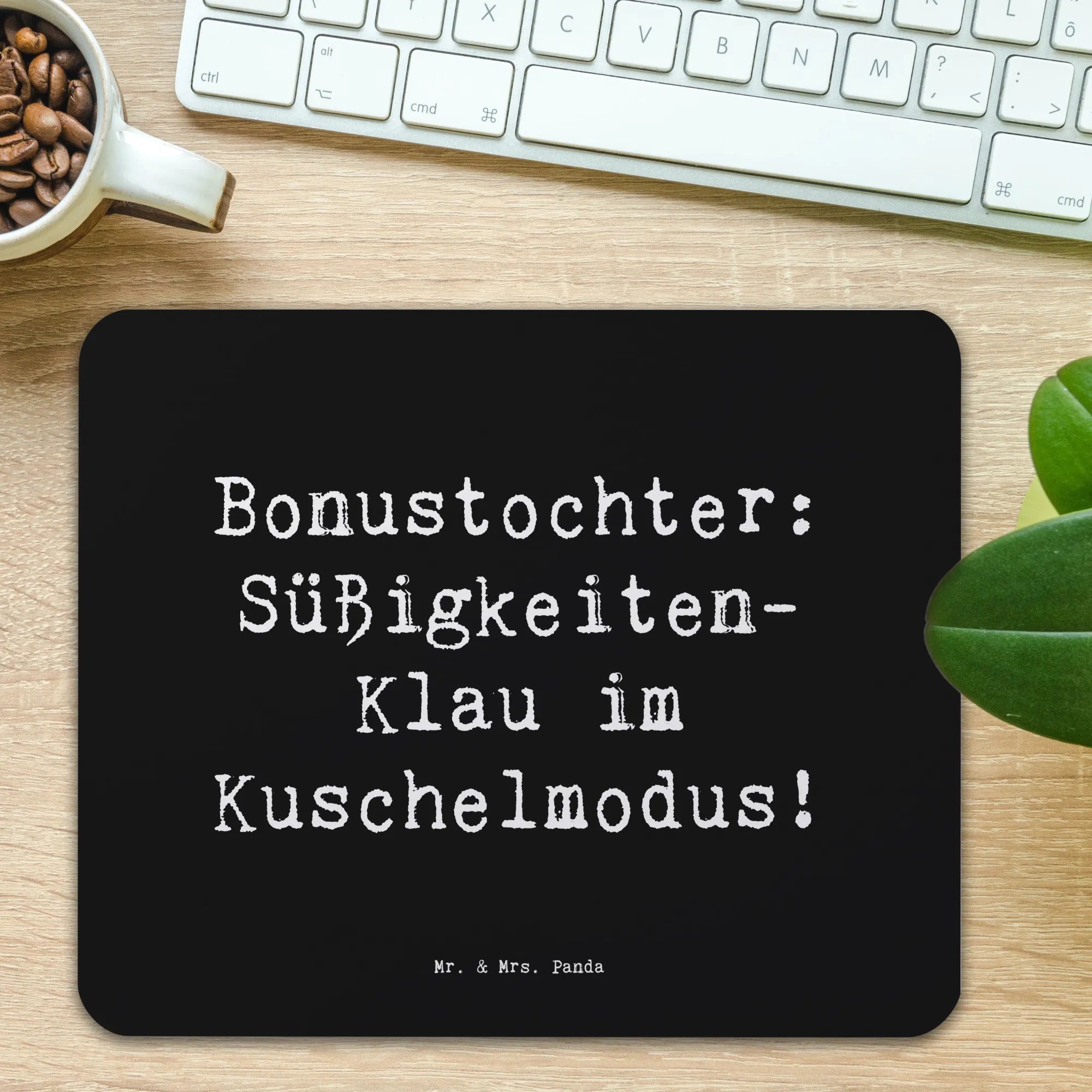 Mit dem niedlichen Slogan "Bonustochter: Süßigkeiten-Klau im Kuschelmodus!" zaubert dieses Mauspad ein Lächeln ins Gesicht. Egal, ob sie gerade für die Schule lernt, im Homeoffice arbeitet oder einfach nur auf dem PC spielt – dieses Mauspad ist ein echter Hingucker und bringt Freude in den Alltag.