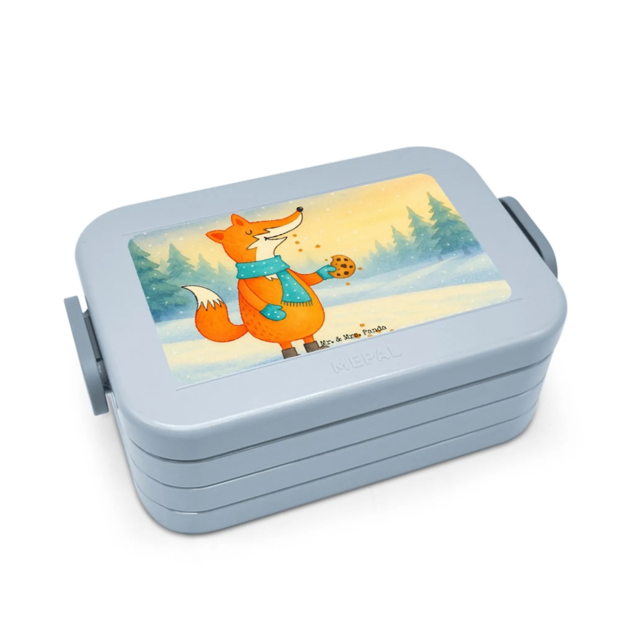 MEPAL Bentobox Fuchs Keks Design - mit Spruch - Blau Pastell