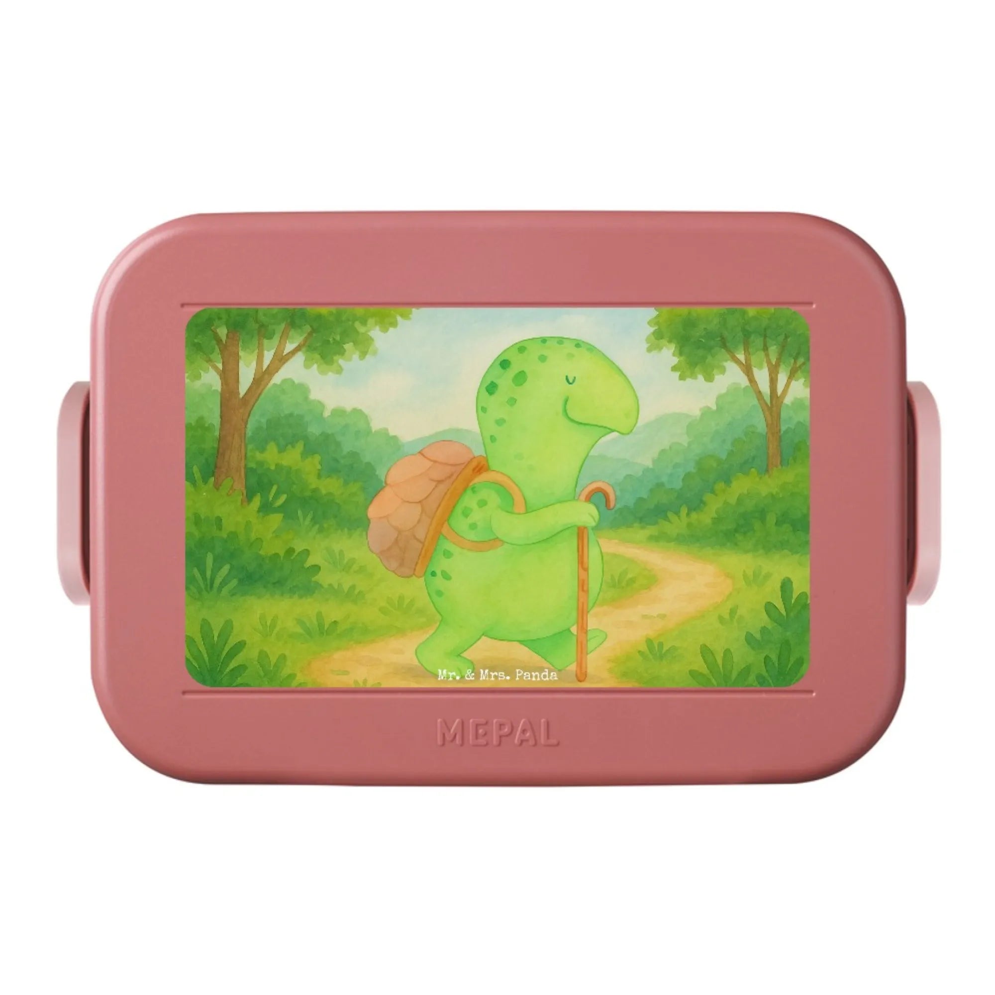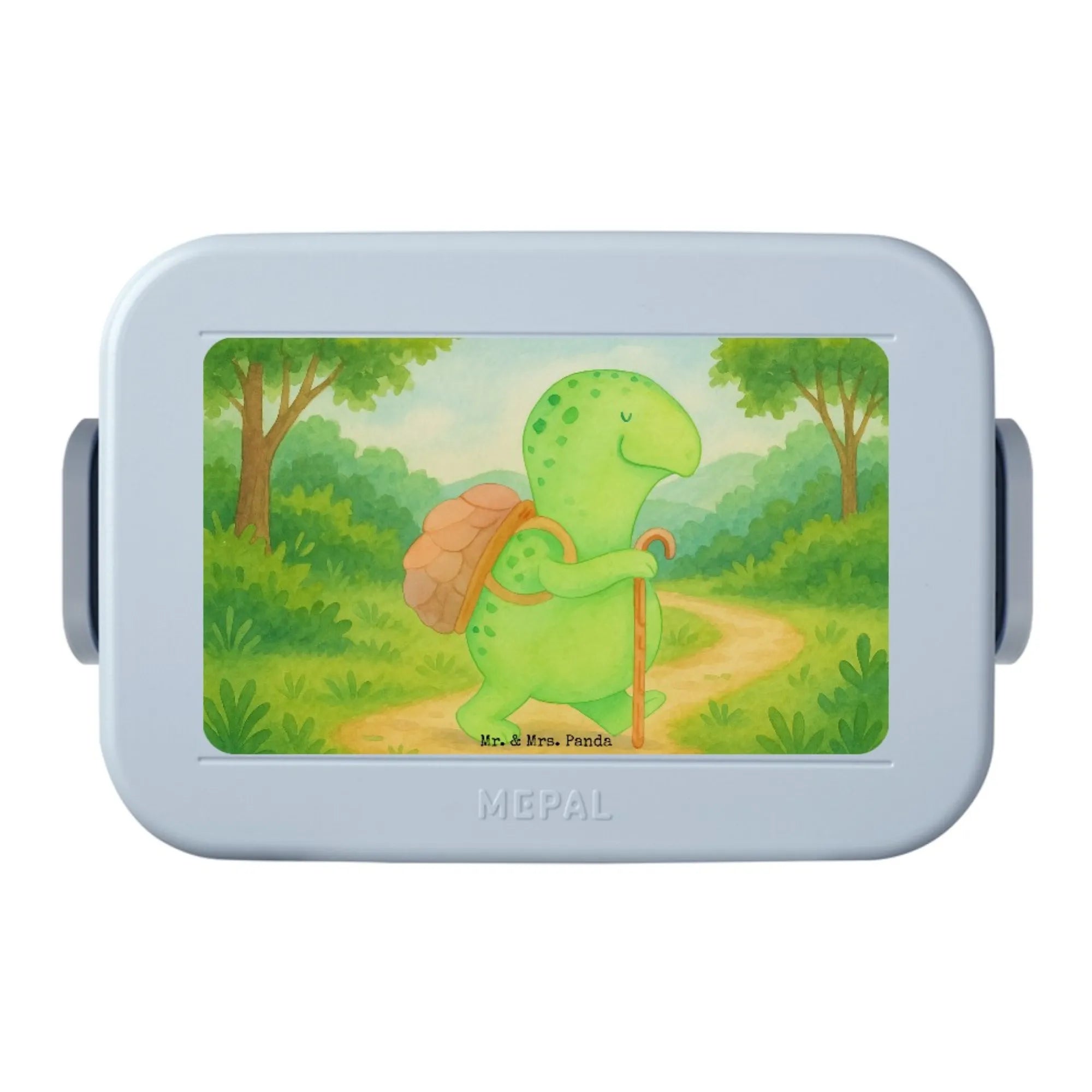 MEPAL Bentobox Schildkröte Wanderer Design - mit Spruch - Blau Pastell