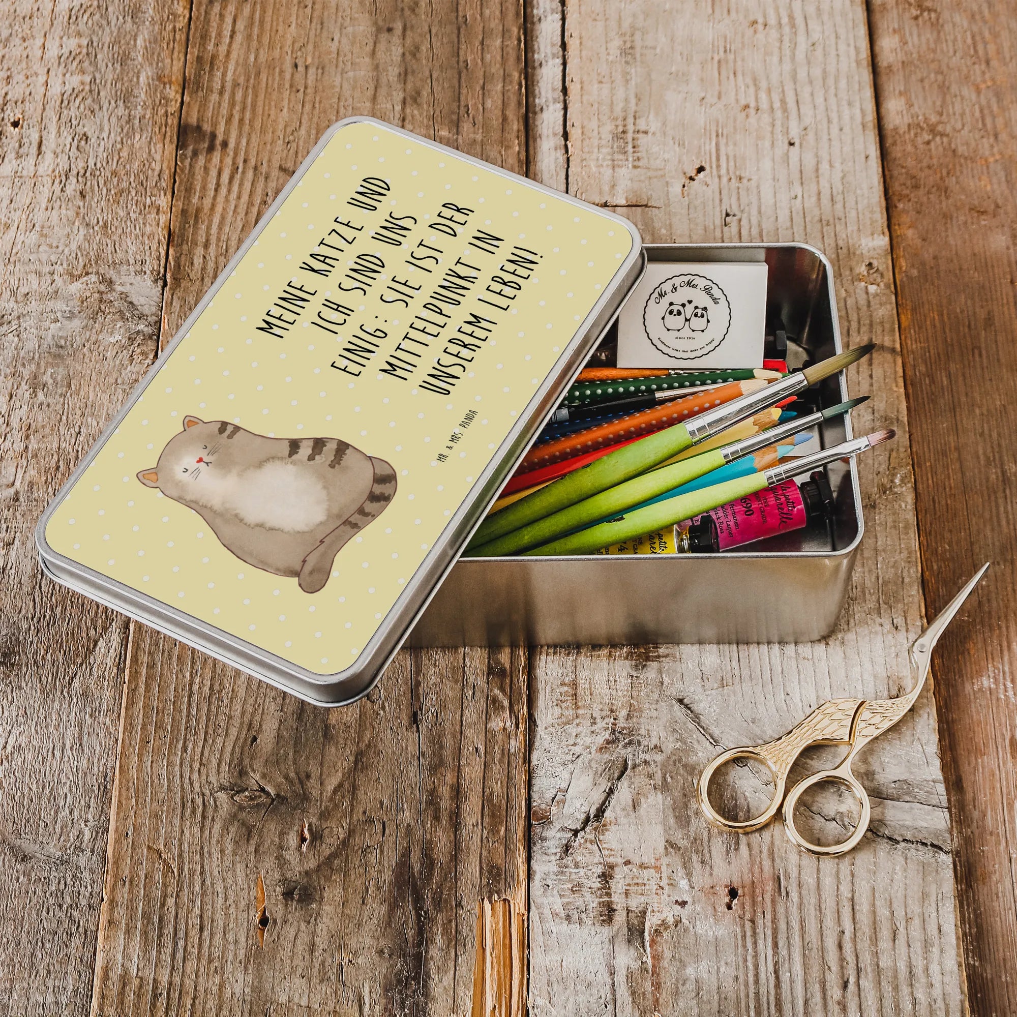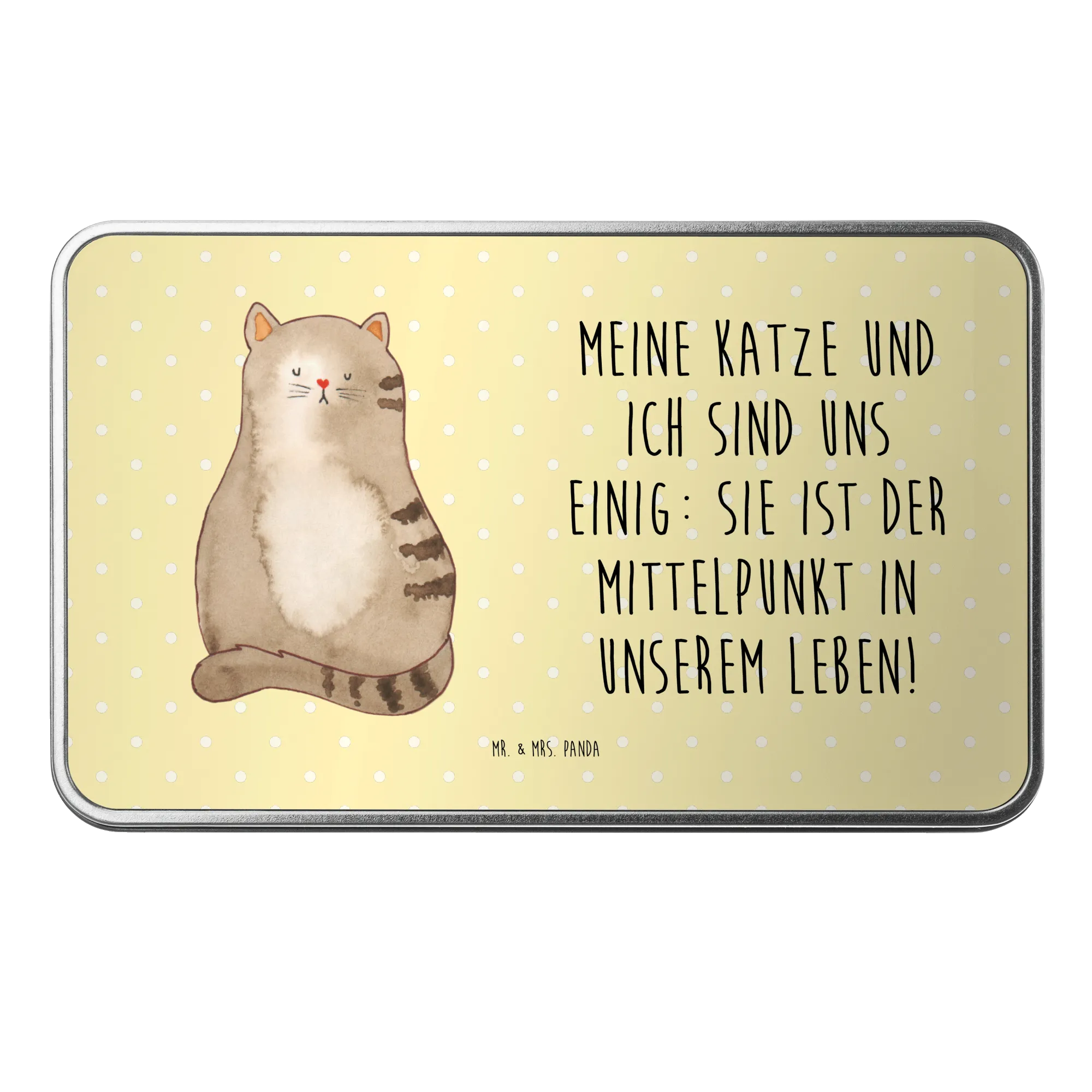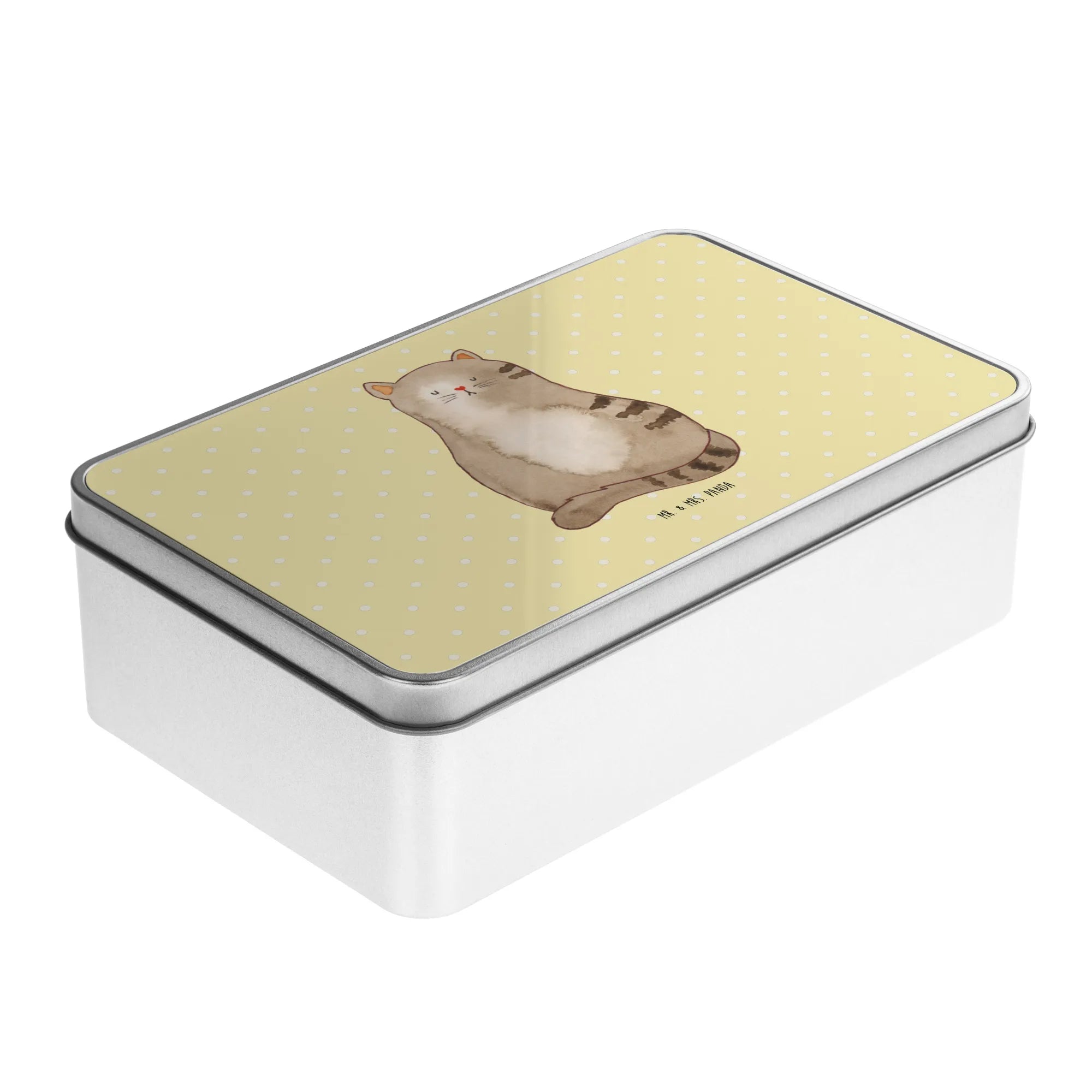 Metalowa puszka kot siedzenie - z napisem