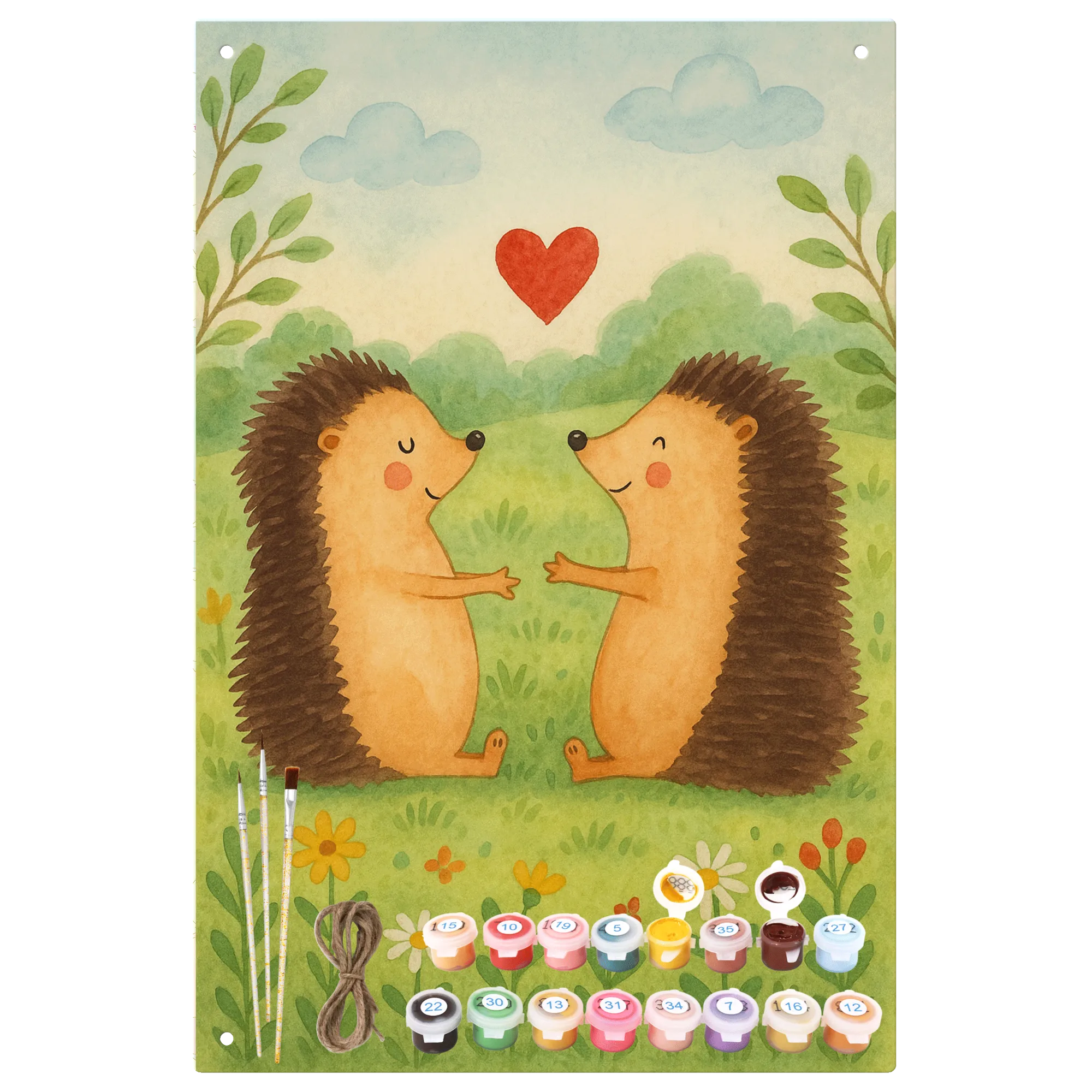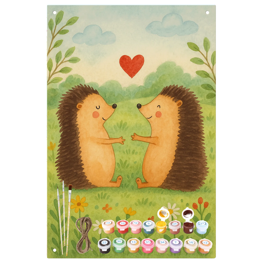 Verschenke kreative Zeit und ein Stück Zuneigung – mit dem Malen nach Zahlen Metallschild „Igel Liebe“. 🦔❤️