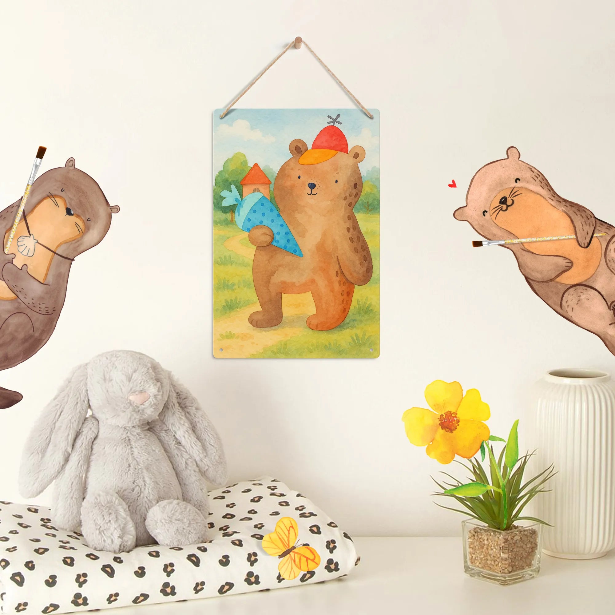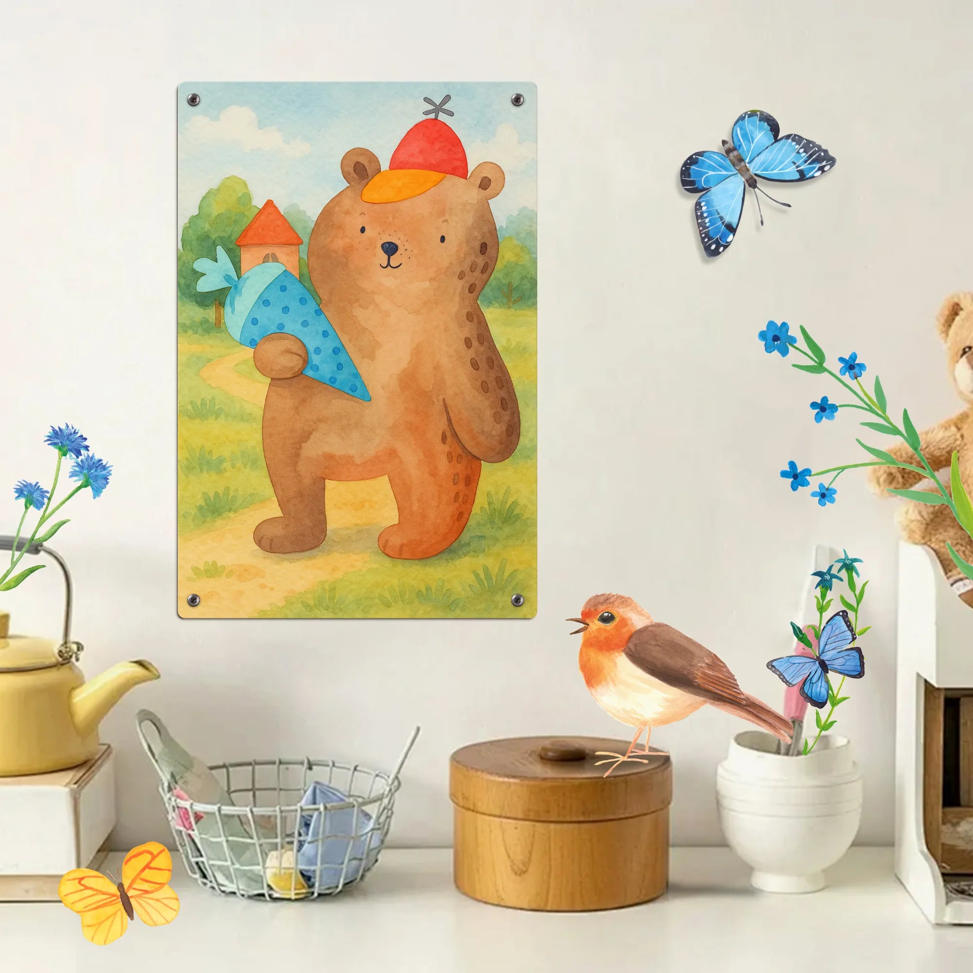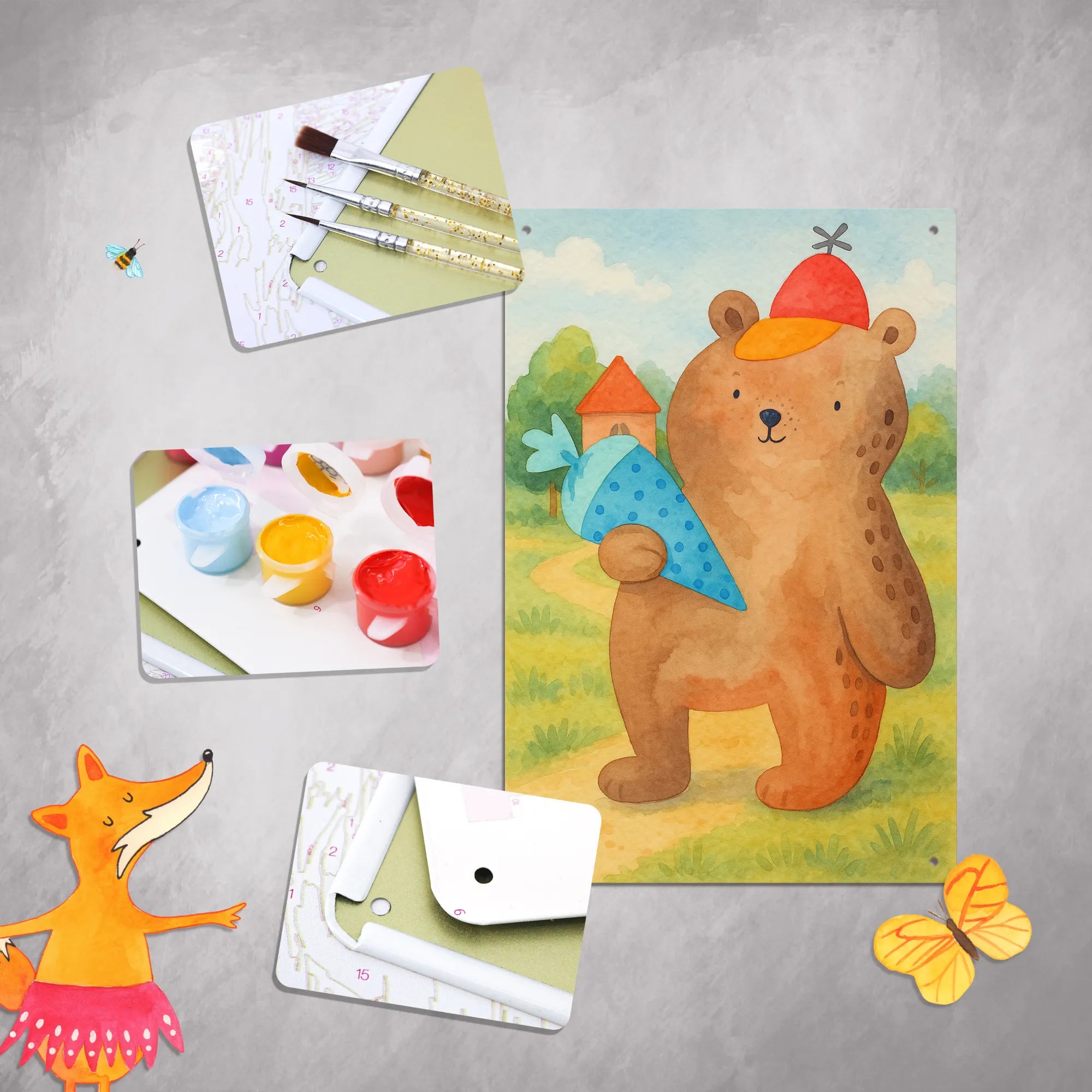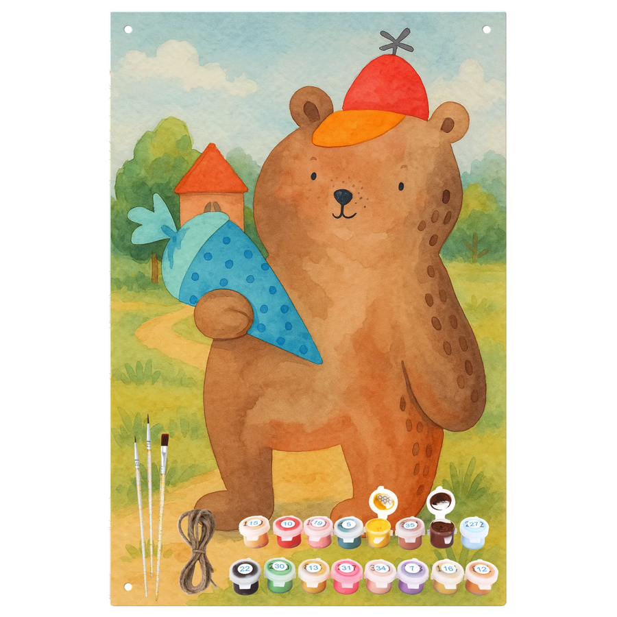 Metalowy szyld do malowania po numerach Niedźwiedź Torebka szkolna Design