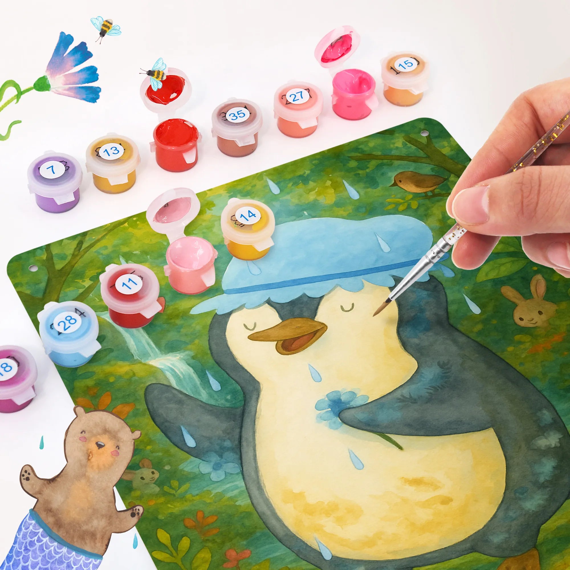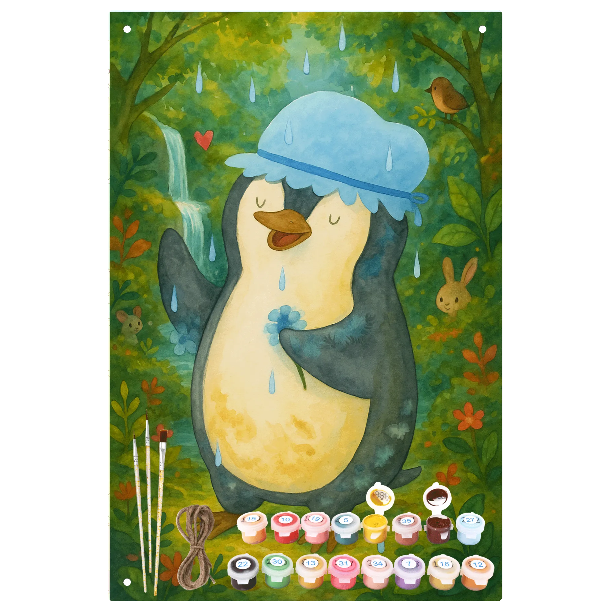 Metalowy szyld do malowania po numerach Pingwin Prysznic Design