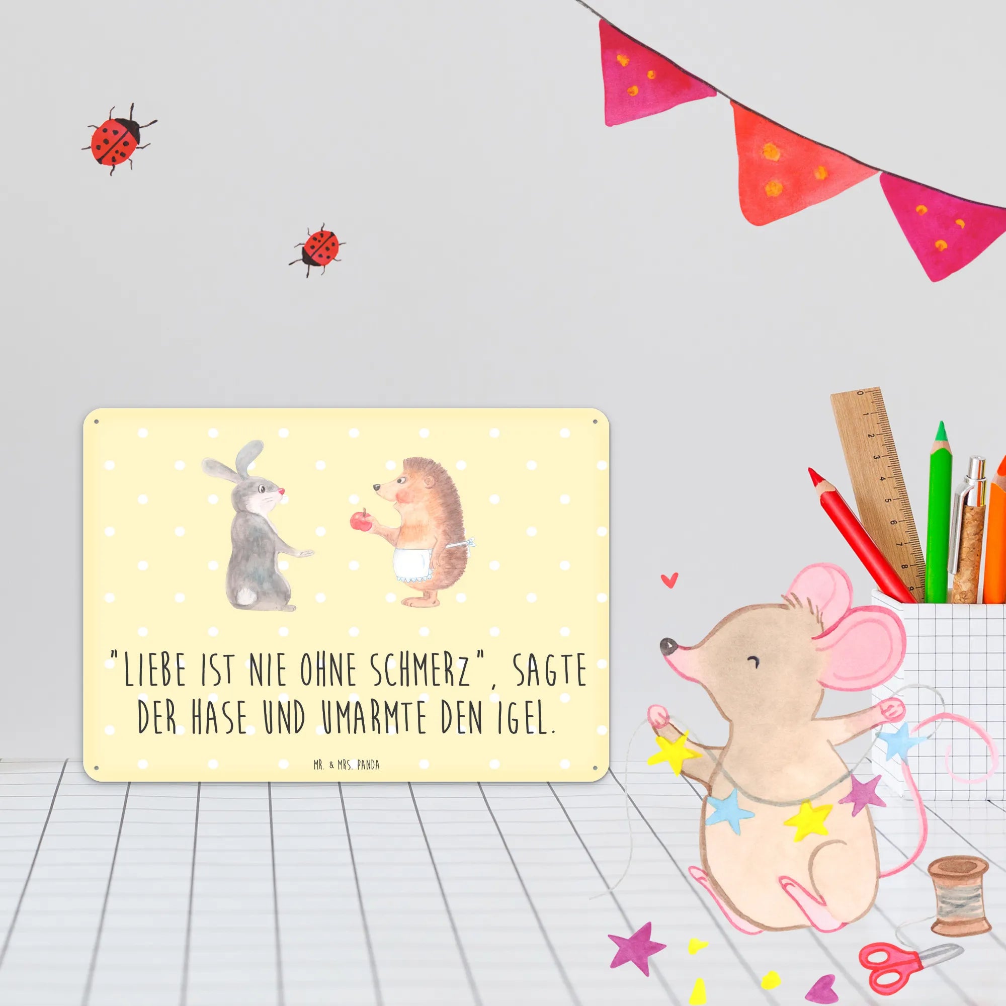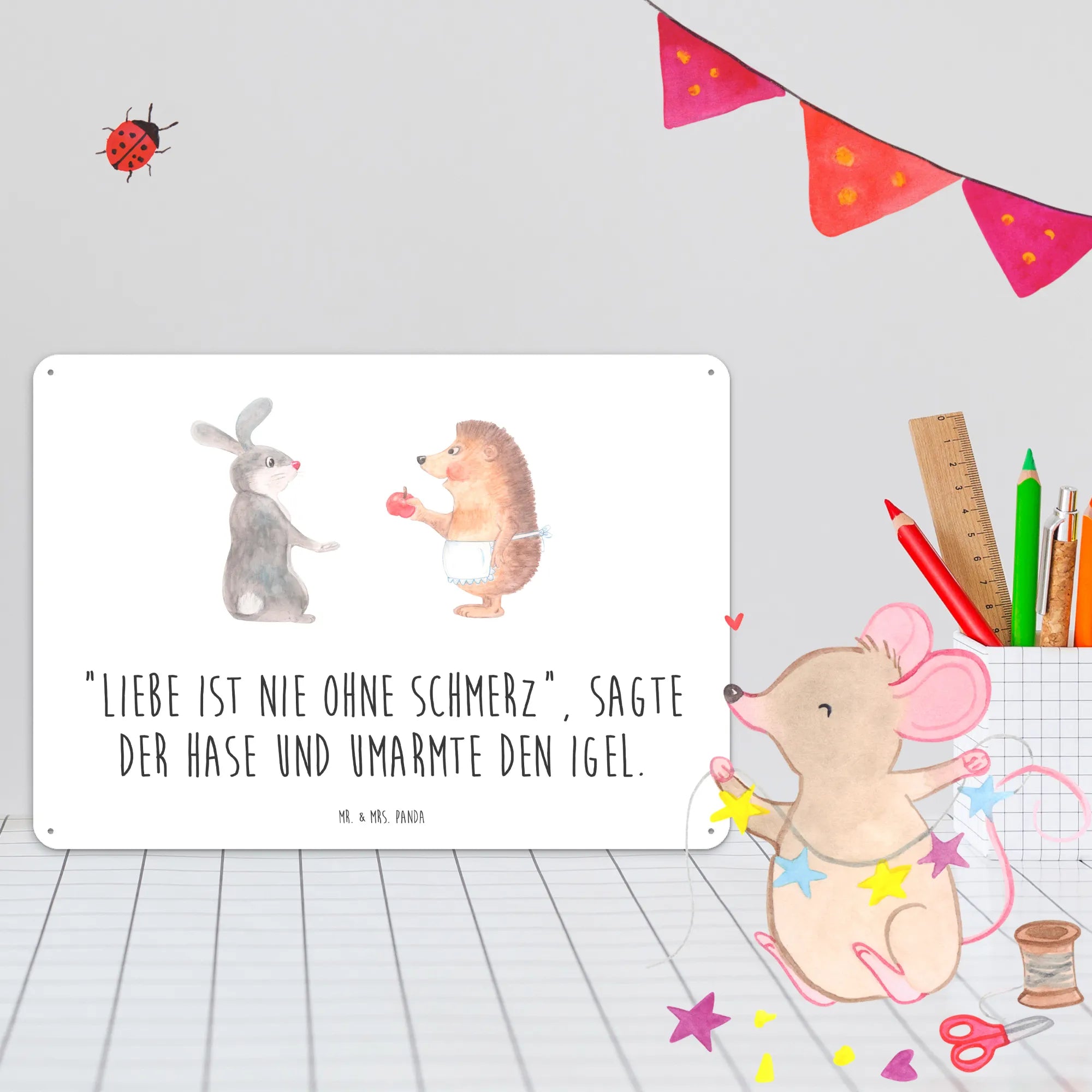 Metalowy szyld królik jeż - DIN A6 - biały
