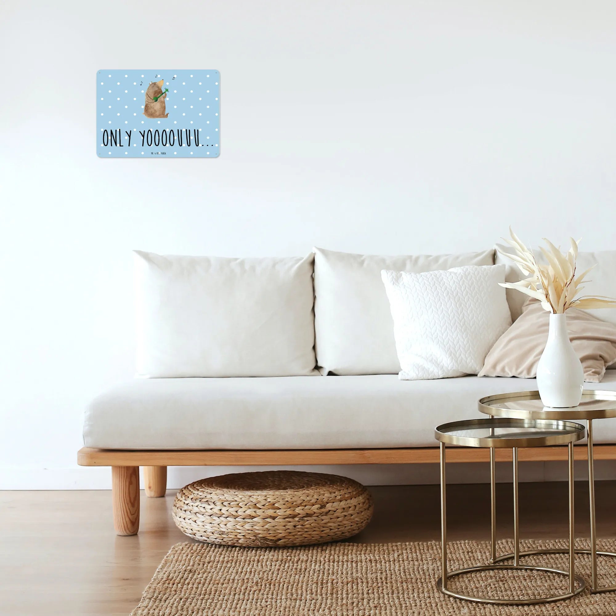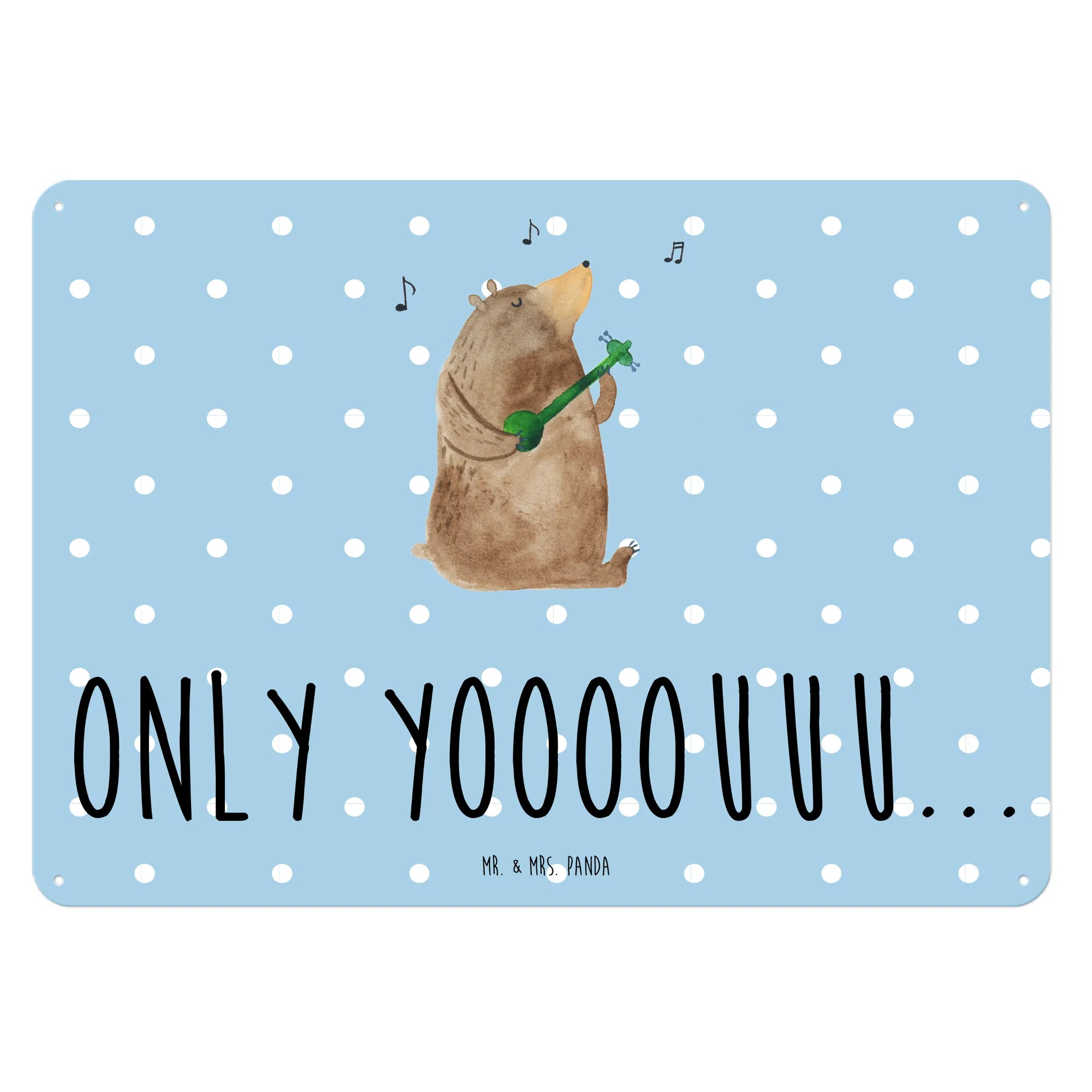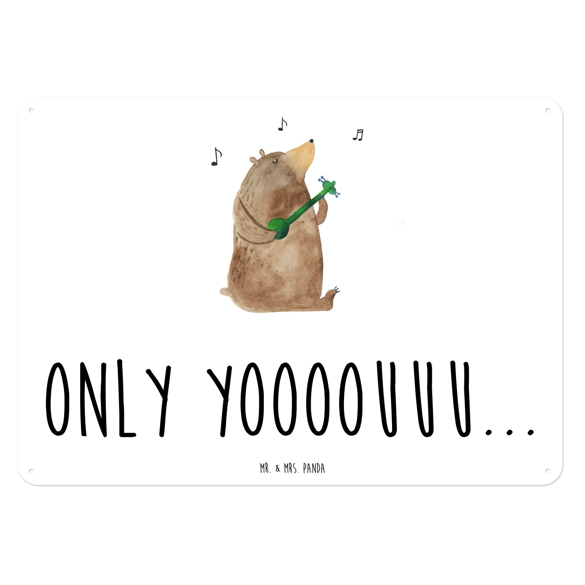 Metalowy szyld niedźwiedź Gitara - DIN A6 - biały