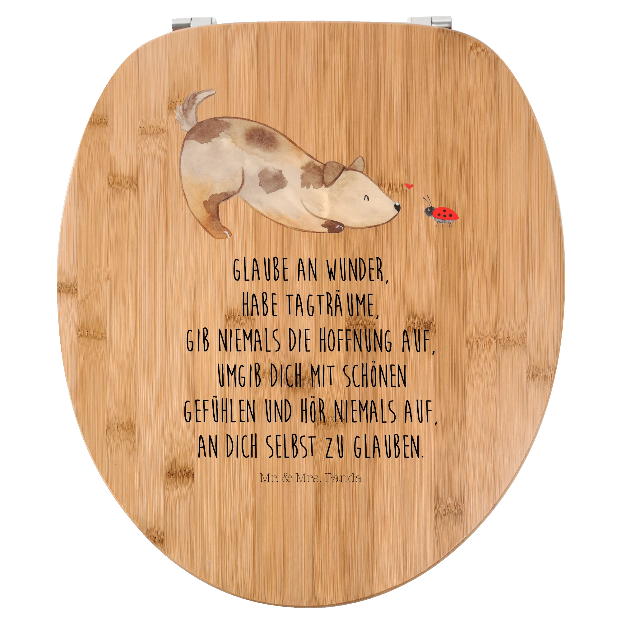 Motiv WC deska sedesowa pies biedronka - z napisem - Bambus - Przezroczysty
