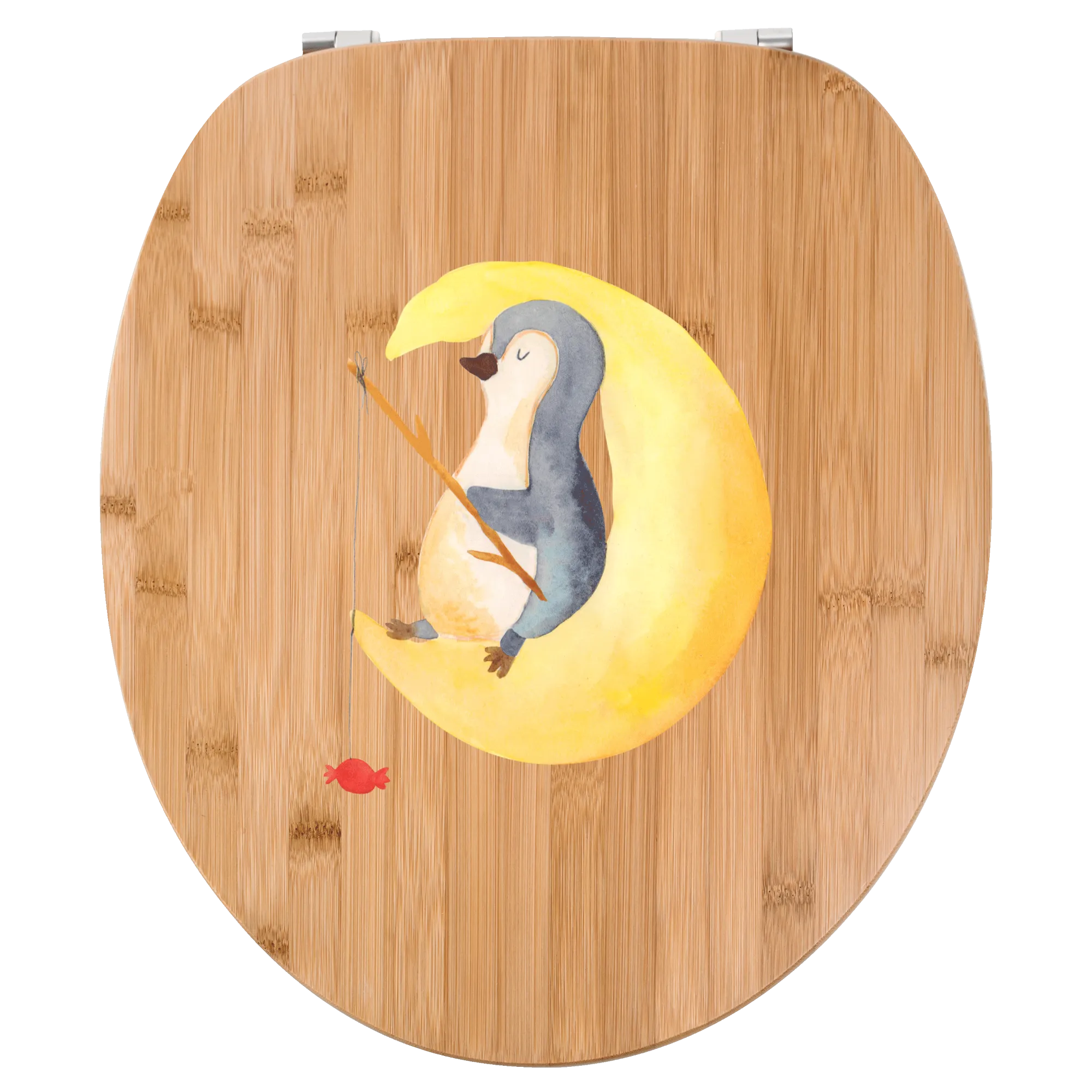 Motiv WC deska sedesowa pingwin księżyc - z napisem - Bambus - Przezroczysty