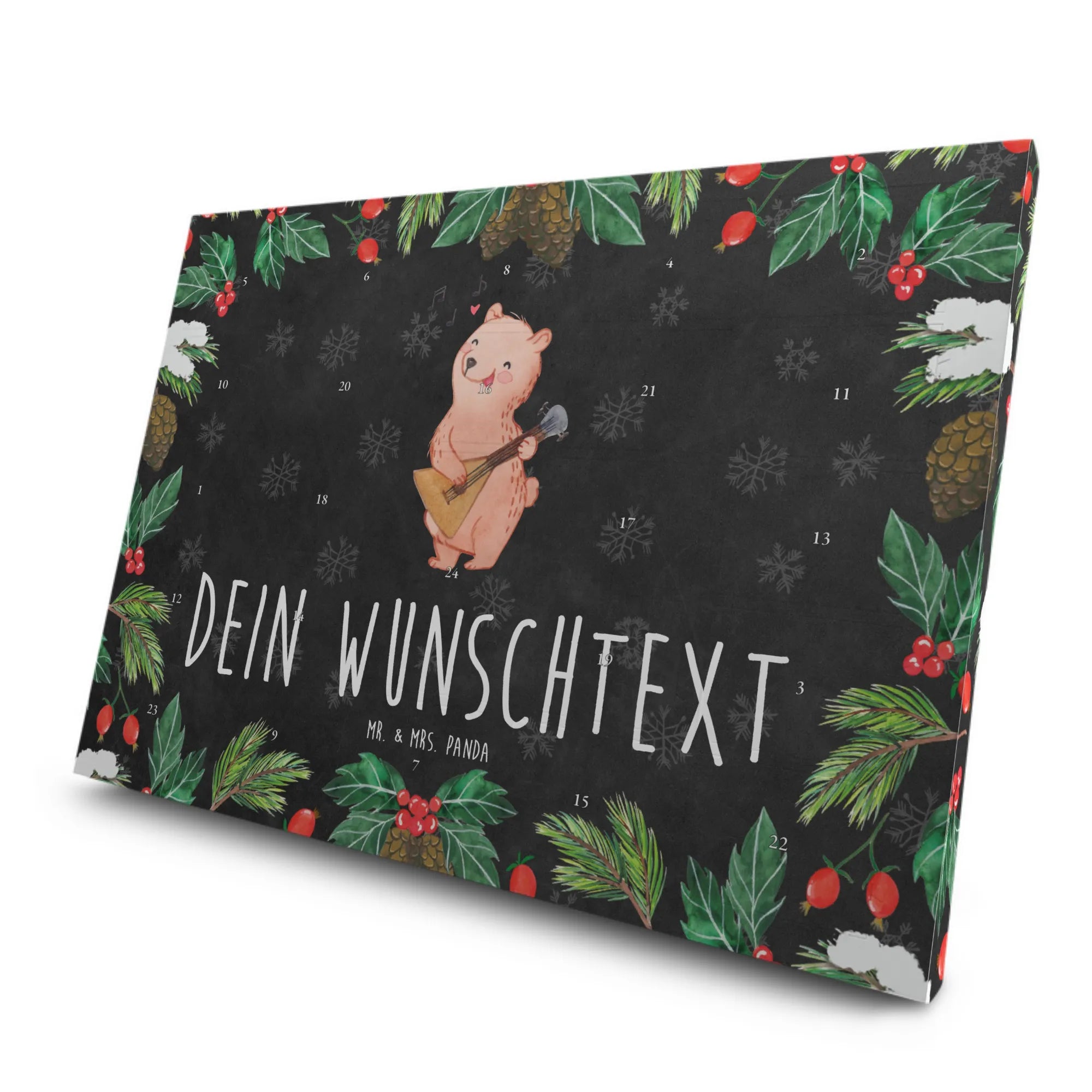 Der personalisierte Tee Adventskalender mit dem liebevollen Motiv Bär Balalaika aus der Kollektion Musik & Instrumente ist das perfekte Geschenk für jeden Musikliebhaber und Teegenießer!