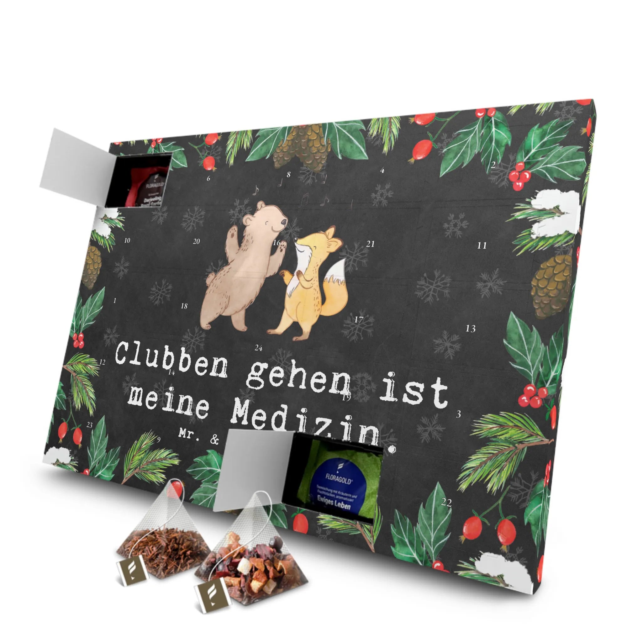 Der Tee Adventskalender "Bär & Fuchs Disco Medizin" von Mr. & Mrs. Panda ist das perfekte Geschenk für alle, die das Nachtleben lieben und gerne zusammen mit Freunden feiern. Auf den 24 Türchen verstecken sich köstliche Teesorten, die jeden Adventstag zu einem besonderen Erlebnis machen. Stell dir vor, wie du an einem kalten Wintermorgen ein warmes Tässchen Früchtetee, Schwarztee oder Kräutertee genießt, während du auf den Weihnachtszauber wartest.